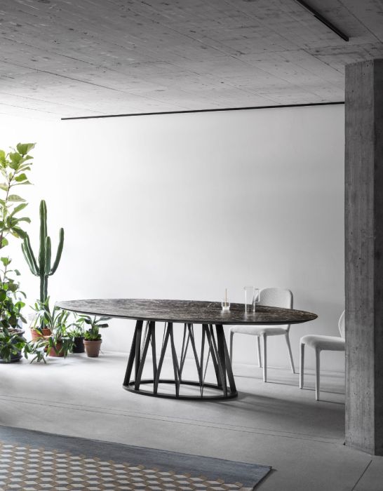 Tables with wooden top, top thickness 4 cm (noce canaletto/rovere fiammato/rovere vintage) or ceramic, top thickness 4,6 cm