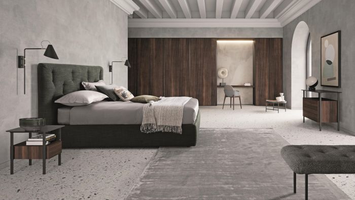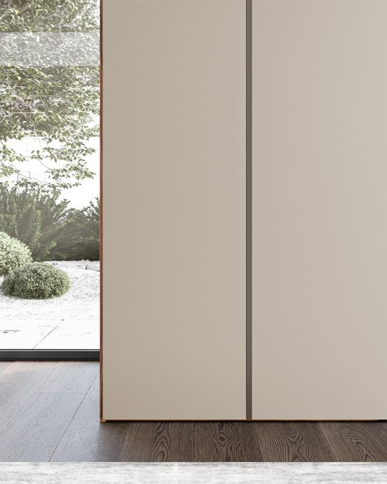 The Tecno hinged-door wardrobe is linear and rigorous, capable of reinventing itself in a thousand different ways thanks to its rich modularity and wide range of finishes. You can choose from wood essences, matte, glossy, and special lacquers, or mirrored surfaces.
