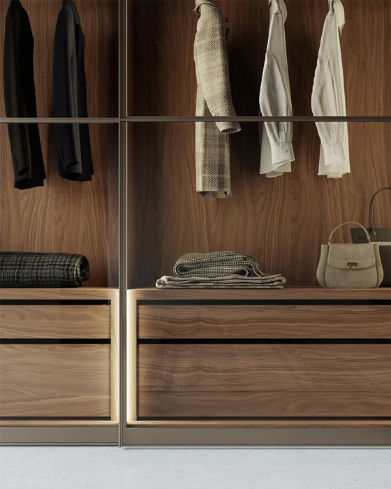 The island that accompanies wardrobes and walk-in closets is the beating heart of the dressing room. It stands proudly in the center of the space, serving as both a visual and functional focal point. It can be equipped with wooden or glass drawers and shelves, and can be paired with a bench.