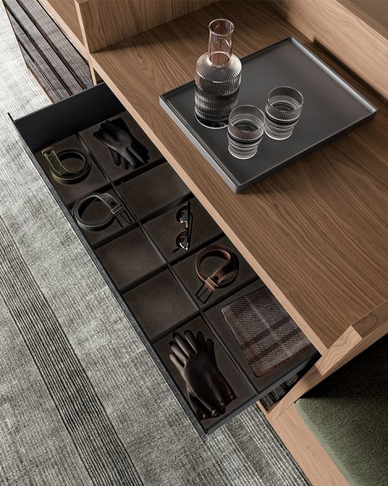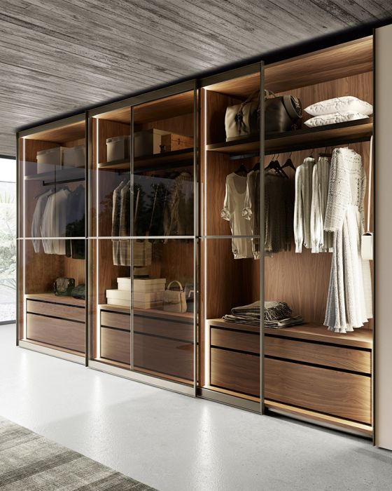 Internal LED lighting plays a crucial role in enhancing the aesthetics of the Glass Up wardrobe: a means of creating atmosphere and giving personality to the space. The diffused and uniform light highlights every detail of its contents, making colors, fabrics, and textures stand out.