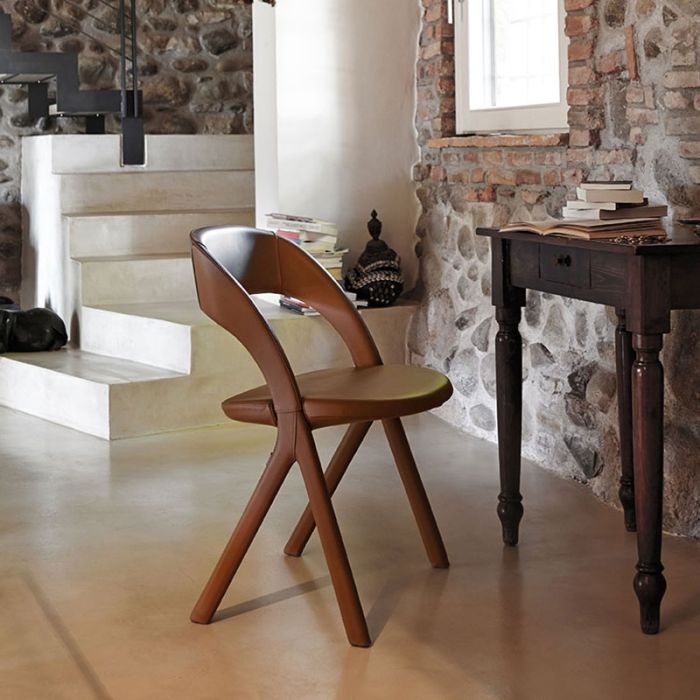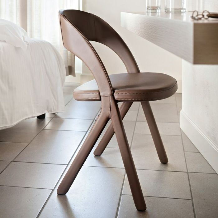 Chair in molded polyurethane foam, with internal steel structure. In leather or upholstery from the sample book.
