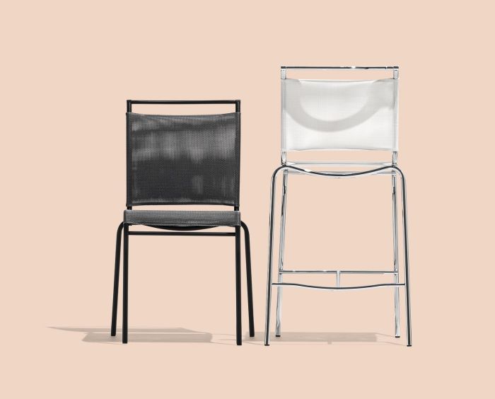 The use of state-of-the-art materials, such as steel tubing and PVC/polyester NET synthetic mesh, made it possible to achieve a durable, lightweight and easy-to-handle chair.