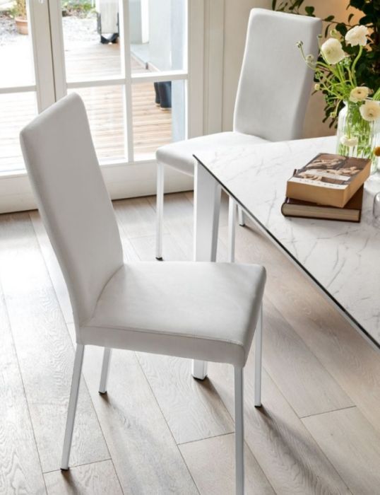 The 4 metal legs are painted in the same colour as the upholstery, this product is designed to be pleasant, soft and ergonomic.