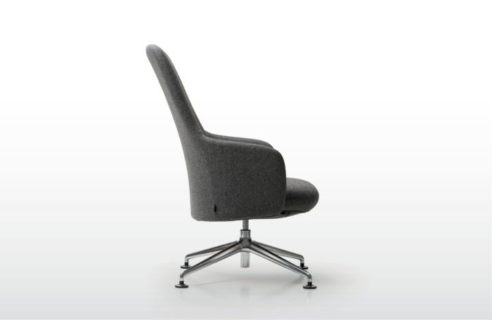 • Armchair with integrated Syncron mechanism 4 positions. 4 spokes aluminium base, high backrest. W 78 x D 81 x H 108 cm (H seat 47 cm)