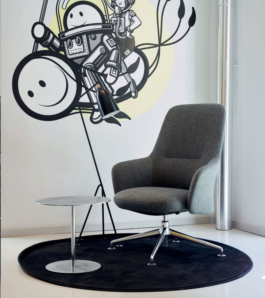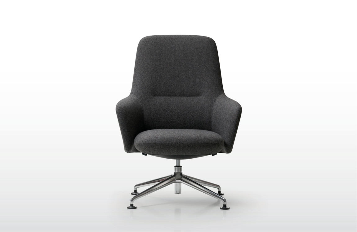 • Armchair with integrated Syncron mechanism 4 positions. 4 spokes aluminium base. Medium backrest. W 78 x D 71 x H 94 cm (H seat 47 cm)