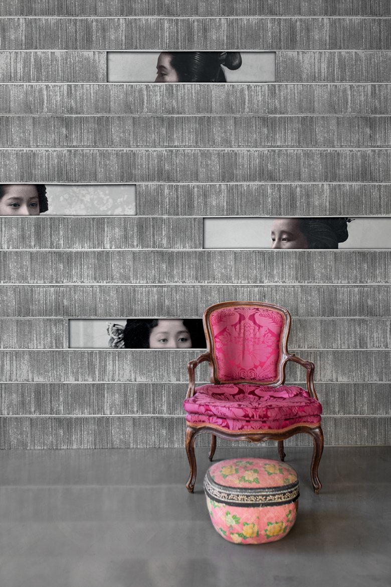 Elements define and shape their environment; the wallpaper collection does not hide but it flaunts a distinctly decorative taste, poised between graphic and photographic research which defines it, making it unmistakable.