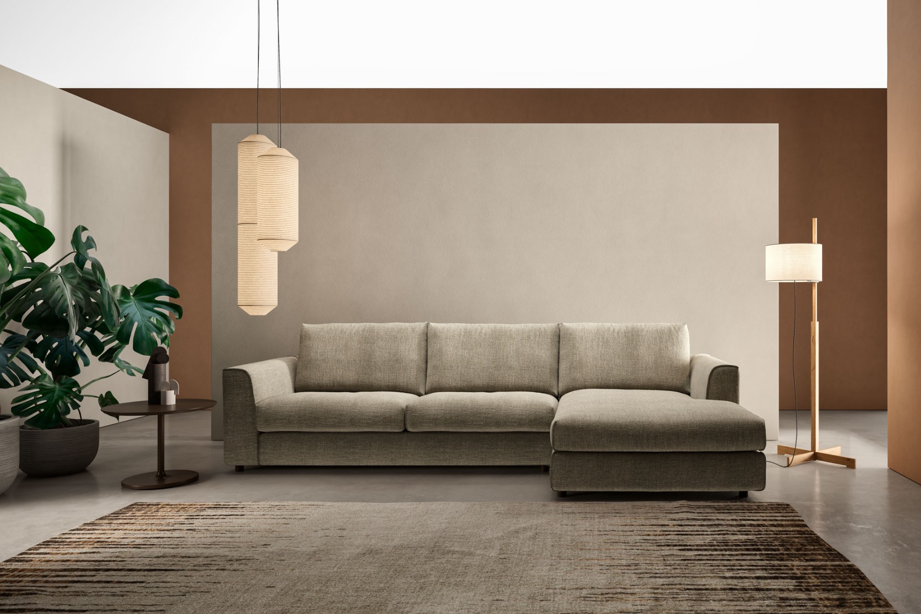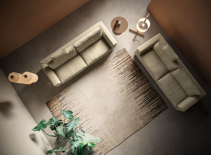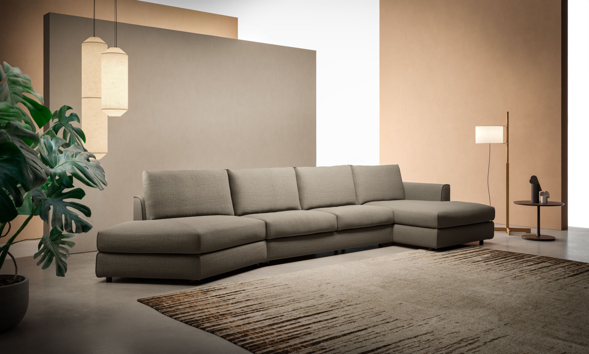 The sofa par excellence. Classic shapes revisited and refined with a contemporary taste, in an essential form softened by the softness and abundance of feather-filled cushions. The design work focuses on comfort, here expressed through a linear, geometric headrest that can be freely positioned along the backrest profile. Alternatively, cylindrical roll cushions can be used, offering a similar function but with a more informal and relaxed visual effect.