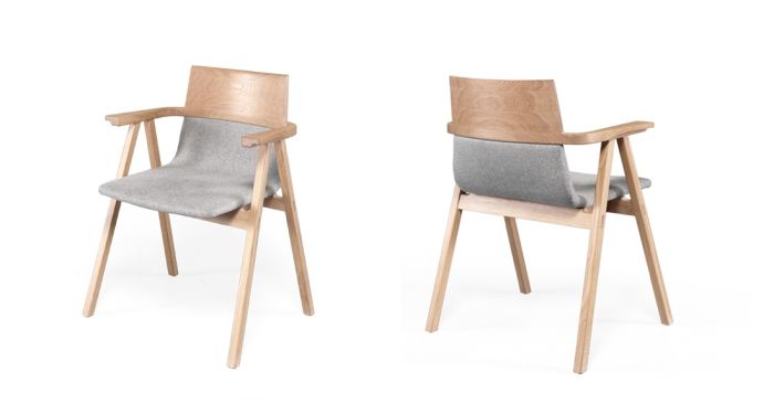 Pensil is available in oak or walnut and in two frame versions, with or without arms.
