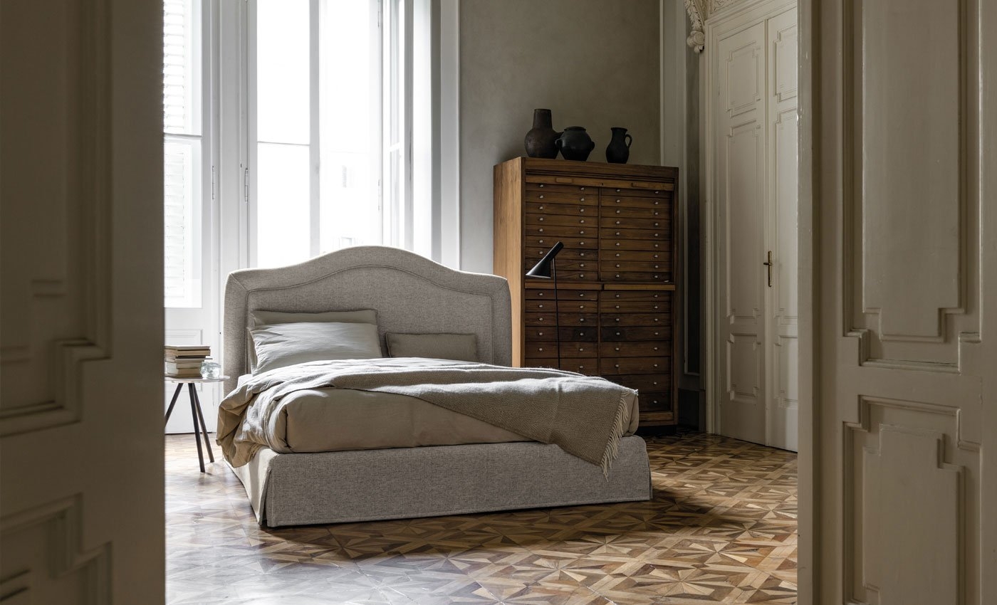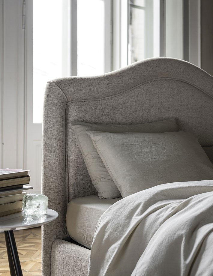 Bed with soft and simple lines, and harmonious proportions, Capri / Mereta allows you to play with the combinations between the headboard frame and its interior, creating a very personal piece of furniture. The headboard interior can be smooth or capitonnè, thus lending character and personality to an elegant and refined bed.
