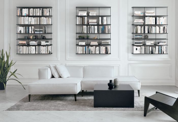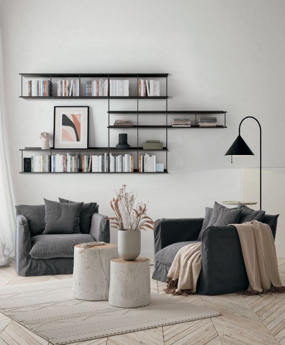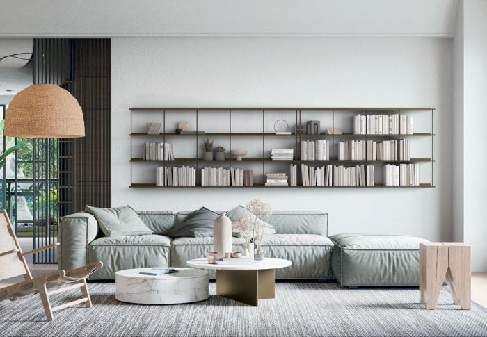 Next to an armchair to keep your books within reach, in a wall arrangement to complete its functions, behind a sofa to create original compositions that look like works of art: the All-Over shelving unit never limits your spaces or your creativity.