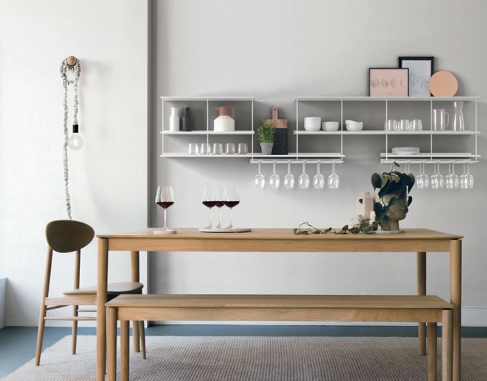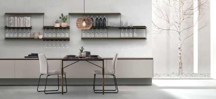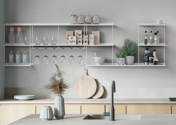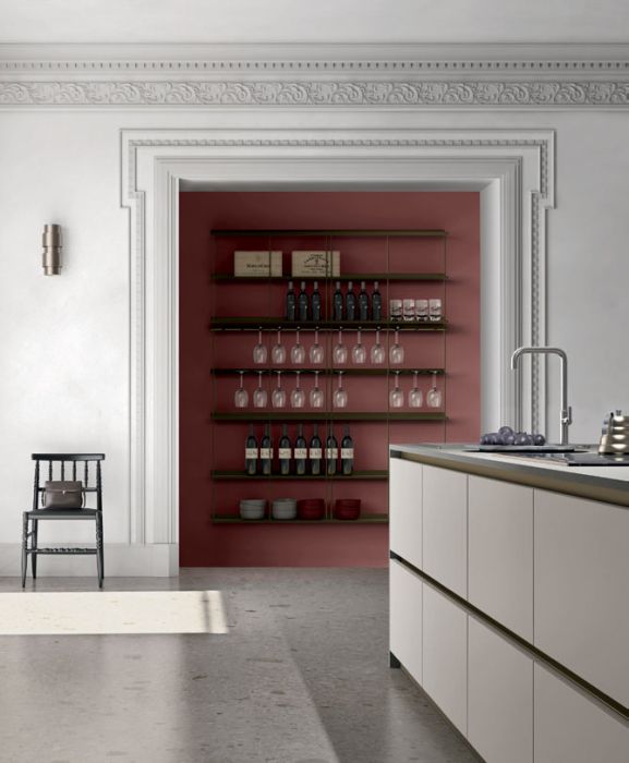 Not just books: All-Over is also designed to become a frontless cupboard, a modern larder or an original wine cabinet for the kitchen. The practical stemware rack alternates with shelves to customise both the look and the functions of the arrangement.