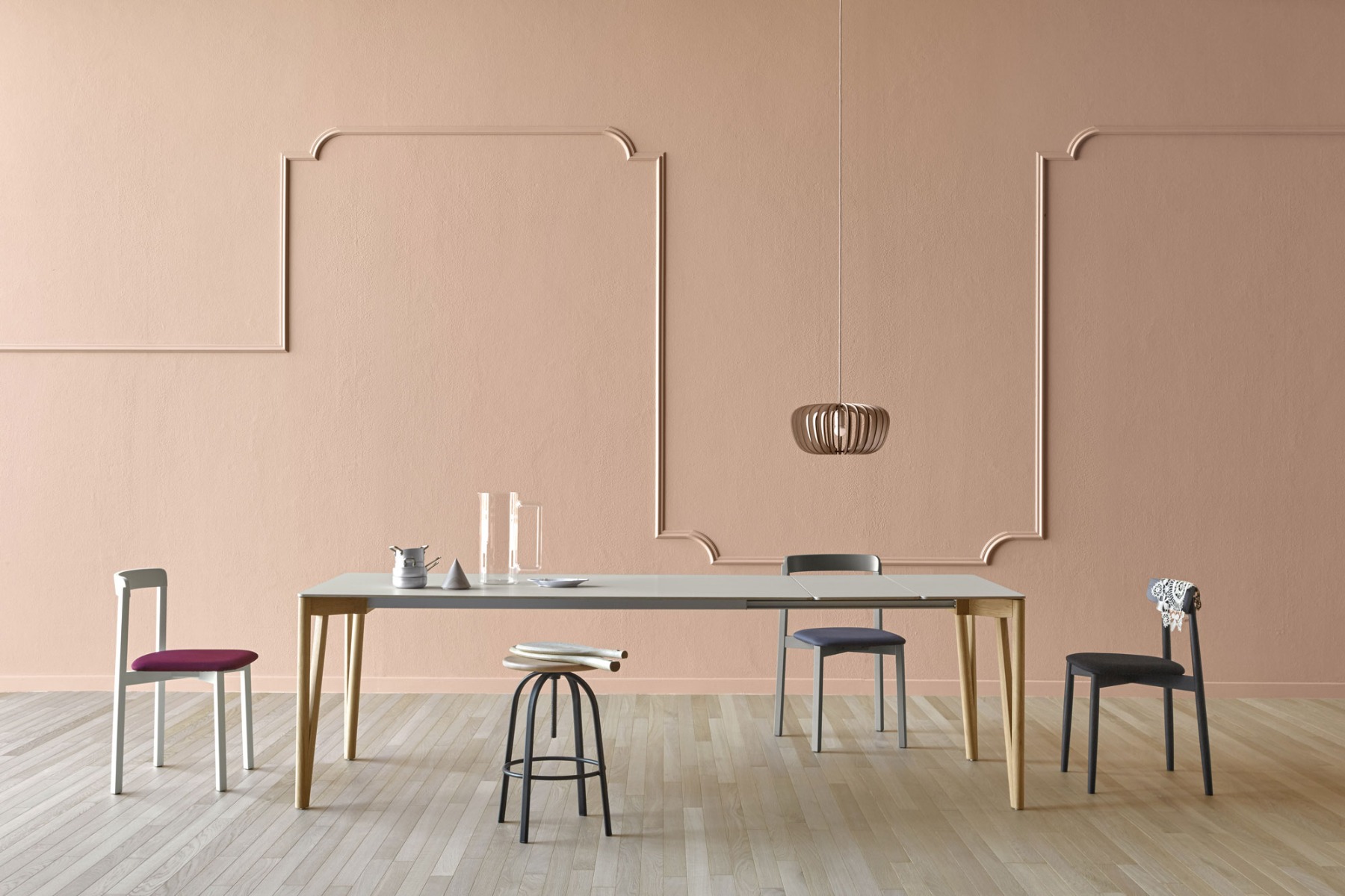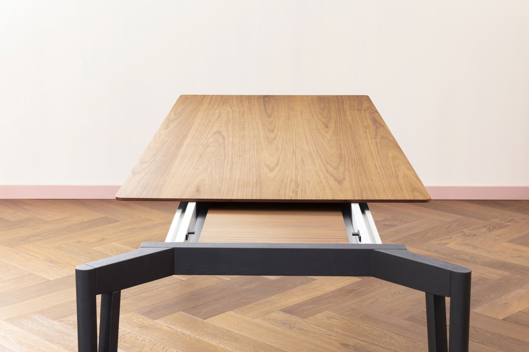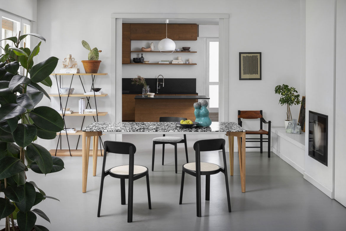Decapo is an extendable or fixed dining table, elegant, with a minimalist and a little Eastern style. It is characterized by the outline of the legs, of a pleasant and narrow ‘V’ shape.