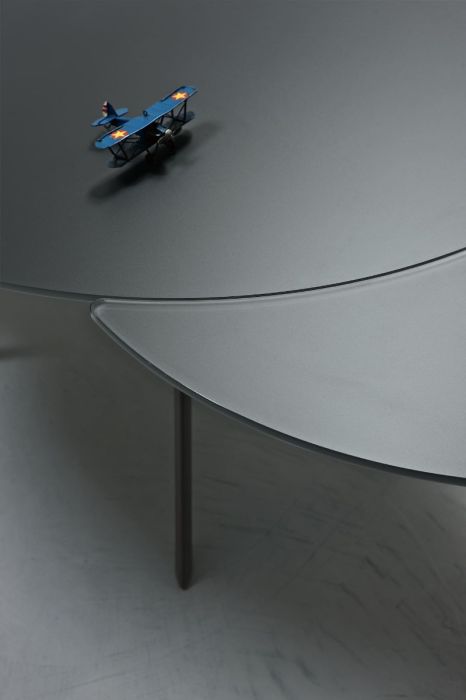 Round extendable table with synchronized telescopic opening mechanism, lacquered or stainless steel structure.