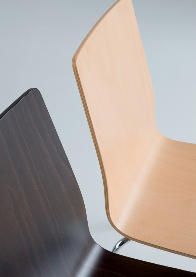 A system of multifunctional chairs and stools which express simplicity, linearity and lightness. Shells in plywood with different finishes make the collection easy to use in residential and community areas. Generously-sized ergonomic shapes are embellished by feature stitchwork in the regenerated leather upholstered version, available in 8 different colors.
