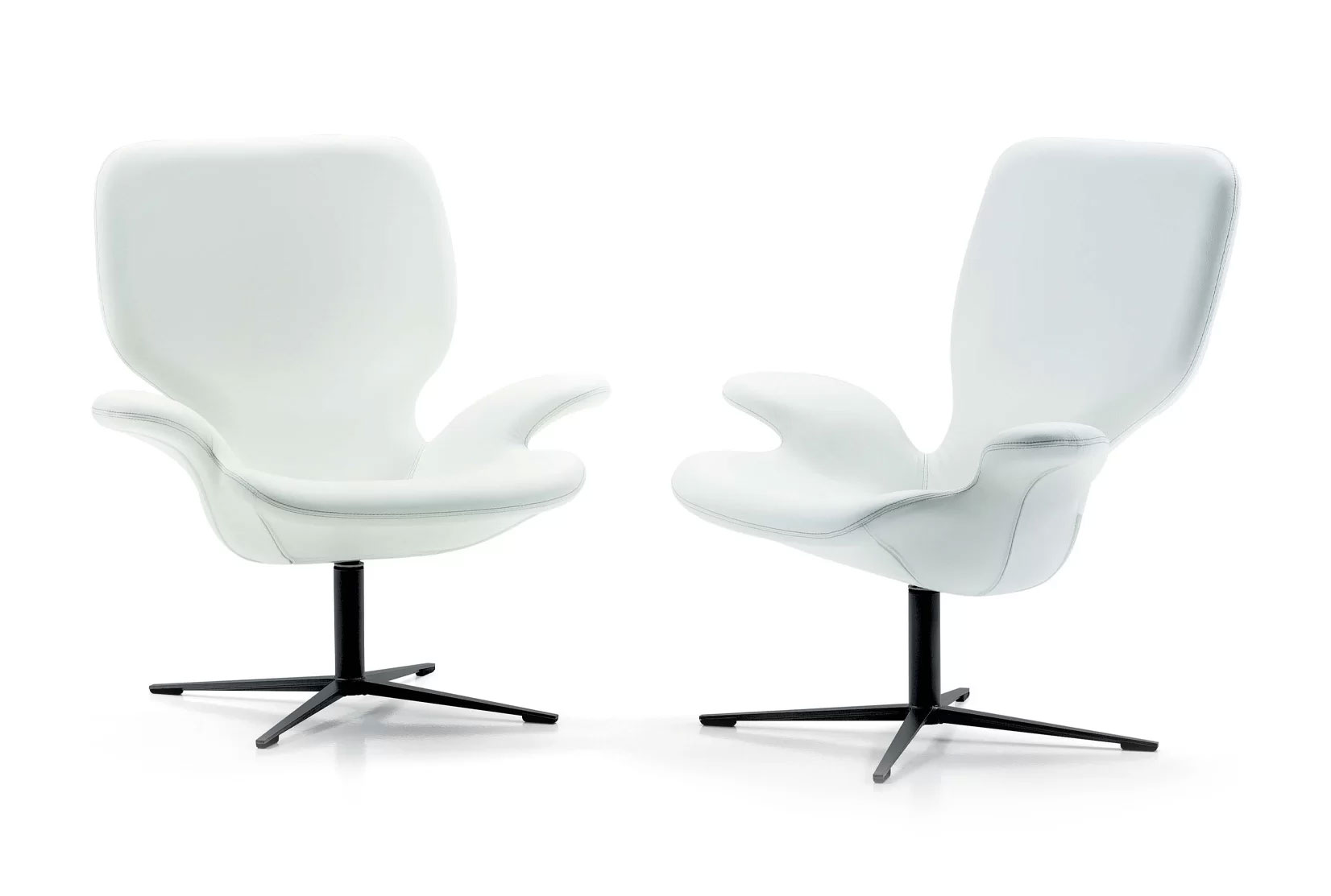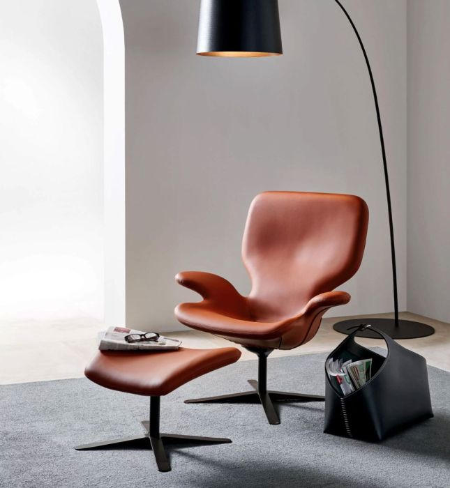 The choice of leather or fabric upholstery offers ample scope for customisation, adapting the armchair to the style of the room.
