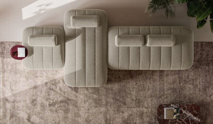 Aesthetic attention is expressed through refined quilting, available in both vertical and horizontal versions, which transforms every element into a unique interpretation of relaxation. Crafted with differentiated-density polyurethane foam, Raggio ensures excellent ergonomic comfort, combining elegant and contemporary design with intuitive and flexible domestic functionality.