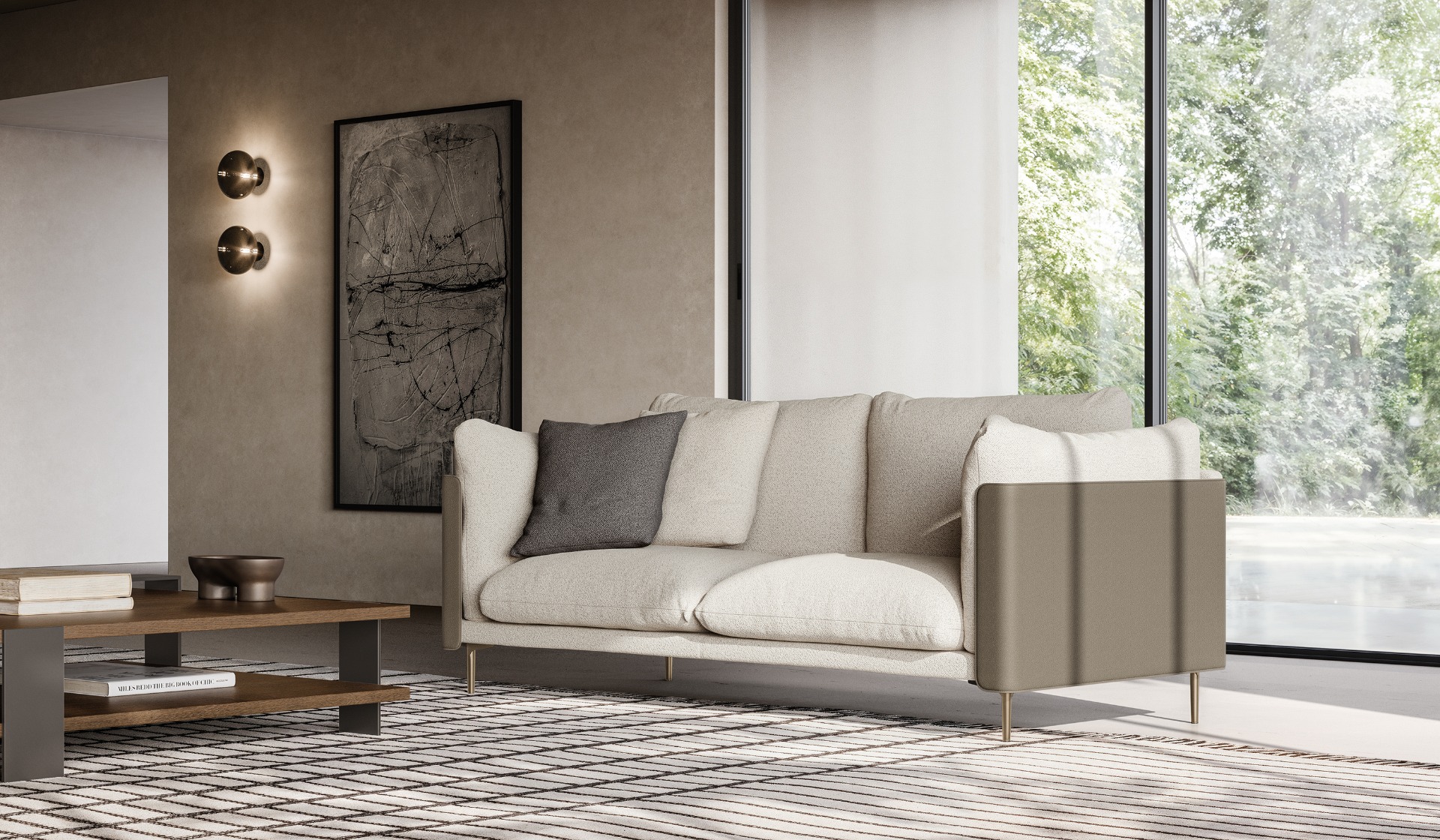 The Settanta sofa stands out for the balance between its enveloping design and unparalleled comfort. Its outer shell, with an elegant and embracing line, is made with an iron sheet core covered in leather or eco-leather, which ensures its structure and durability over time. Inside, the softness of the goose down and fiber padding creates an incredibly soft and welcoming seating experience, where the rigor of the shell meets the lightness of comfort.