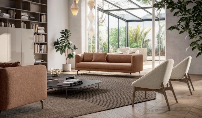 Versatility is the hallmark of this model: Le Mans Lounge is available with various base options, perfect for adapting with style to any domestic need. A highly impactful aesthetic feature is the possibility to customize the back of the backrest with a finish or upholstery different from the front, allowing for the creation of unique color and material contrasts.