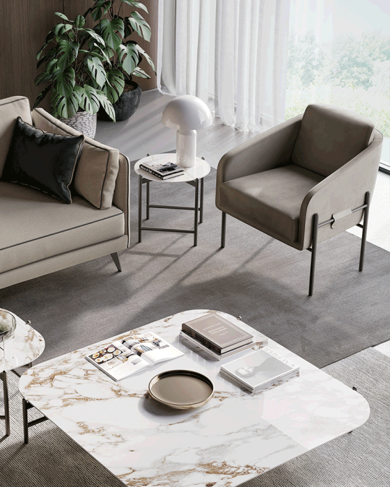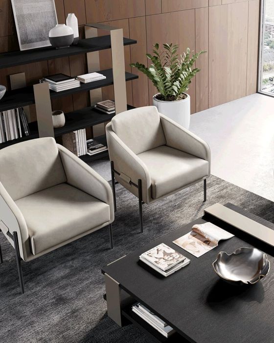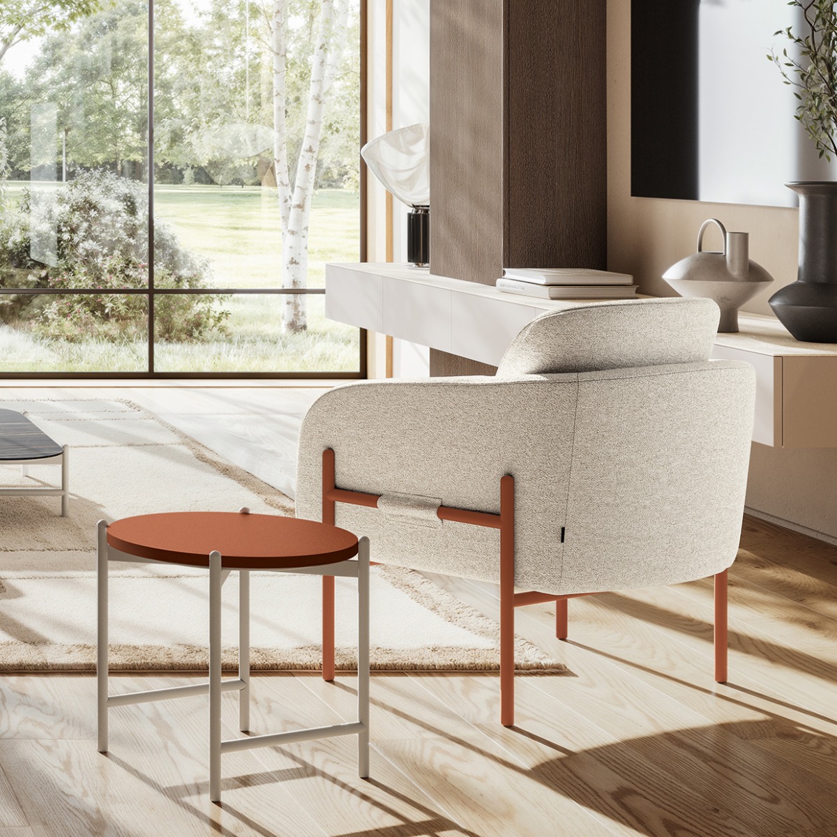 The elegant Supernova armchair expresses a simple and pure design, perfect for furnishing environments with a contemporary and rigorous style. Part of an entire family inspired by the refined atmosphere of the 1930s, this armchair features metal rod legs with rounded heads, minimal elements that define its unique character.
