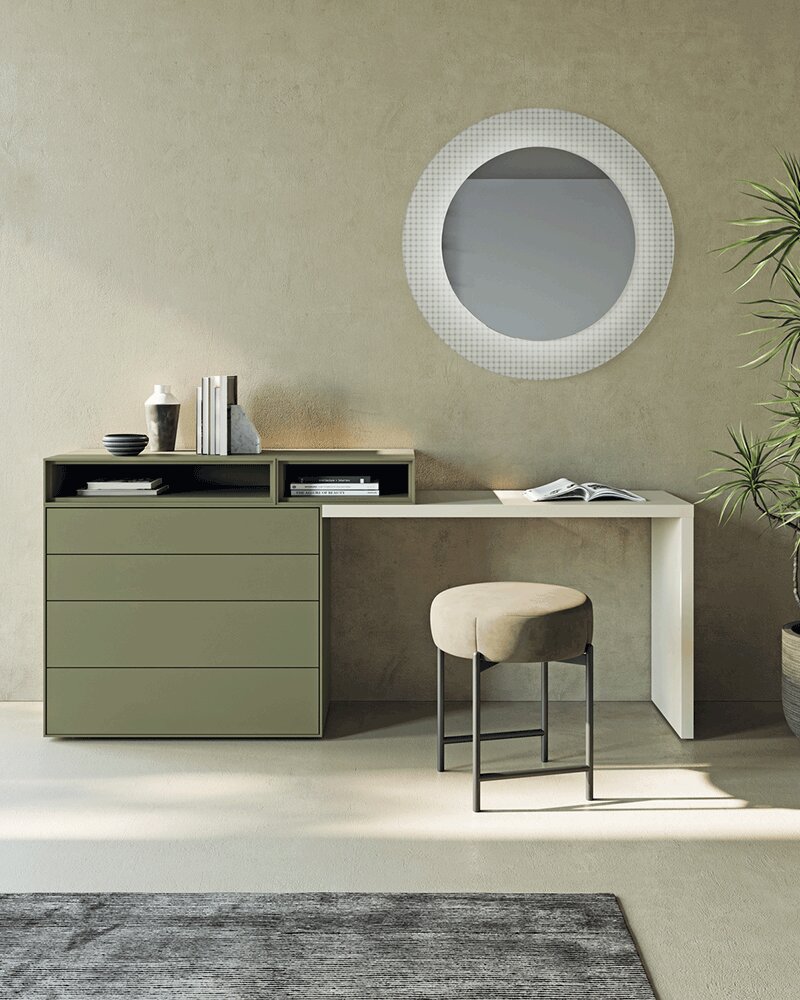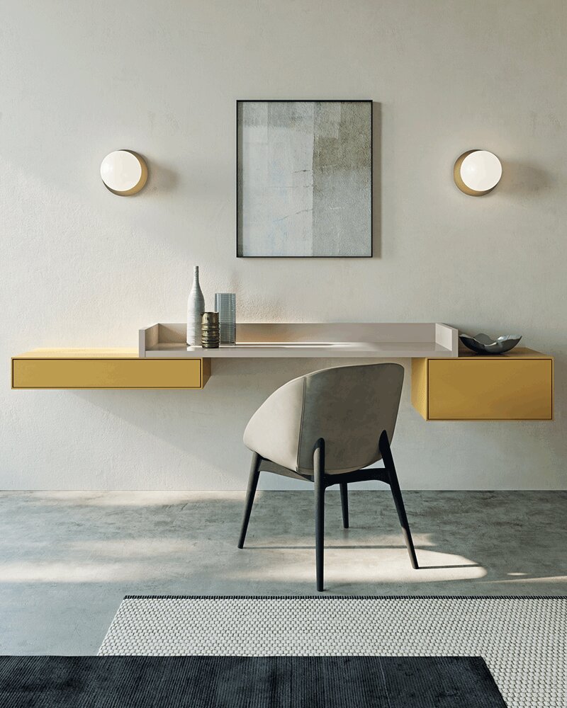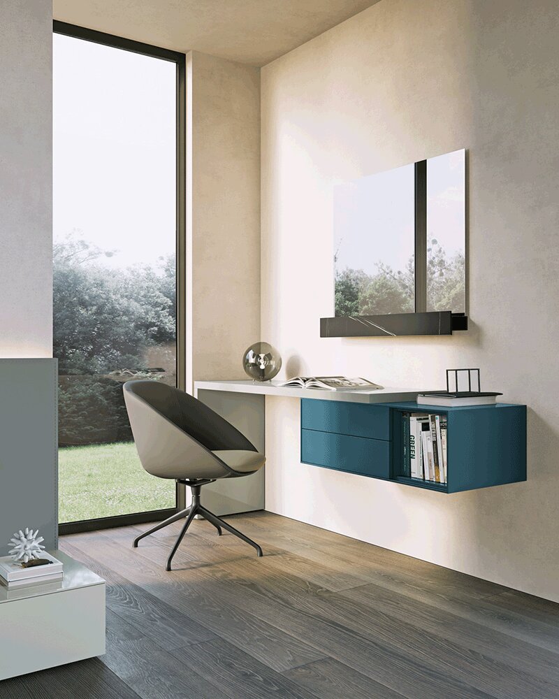 The Modula system is a flexible and creative furnishing solution designed to build a bespoke home office environment or vanity unit. Thanks to its configurable nature, Modula allows for everything from extremely essential versions, such as a wall-mounted desk with a back-panel, to more complex and structured compositions.