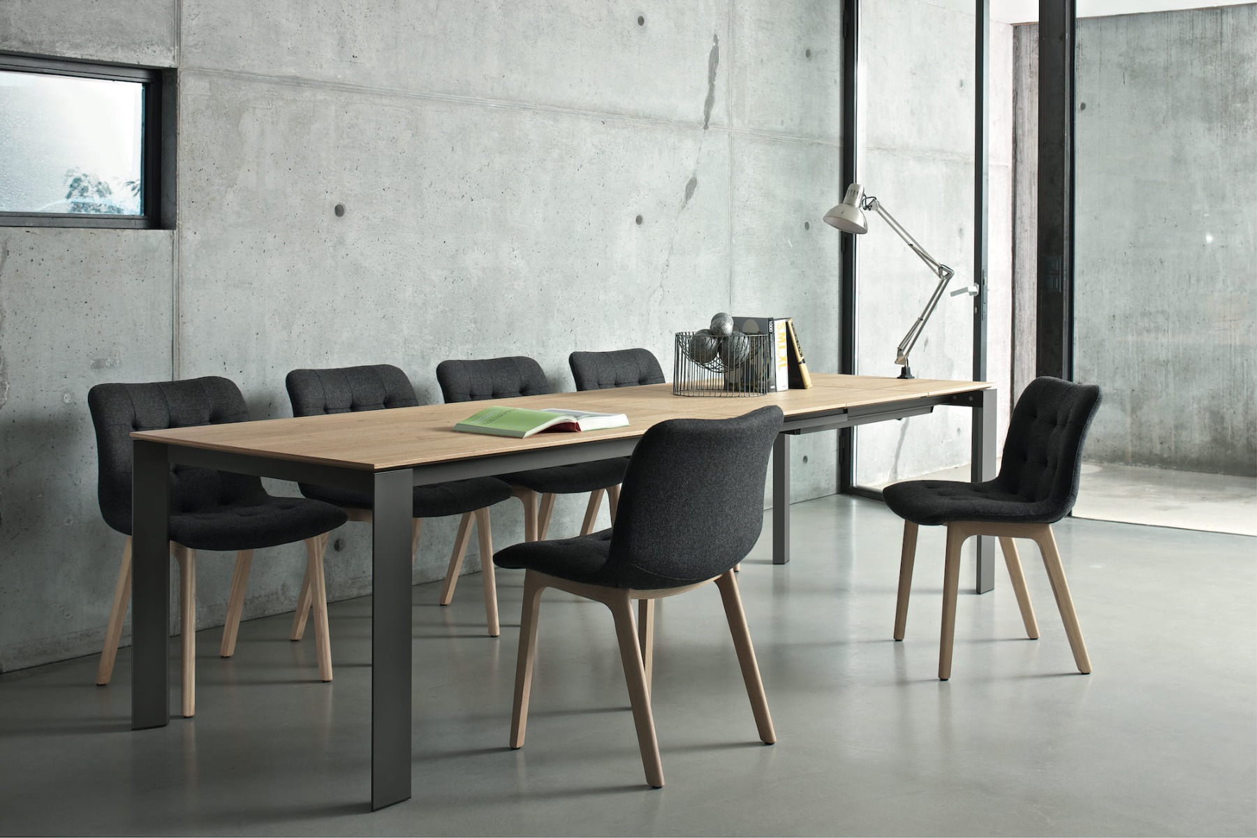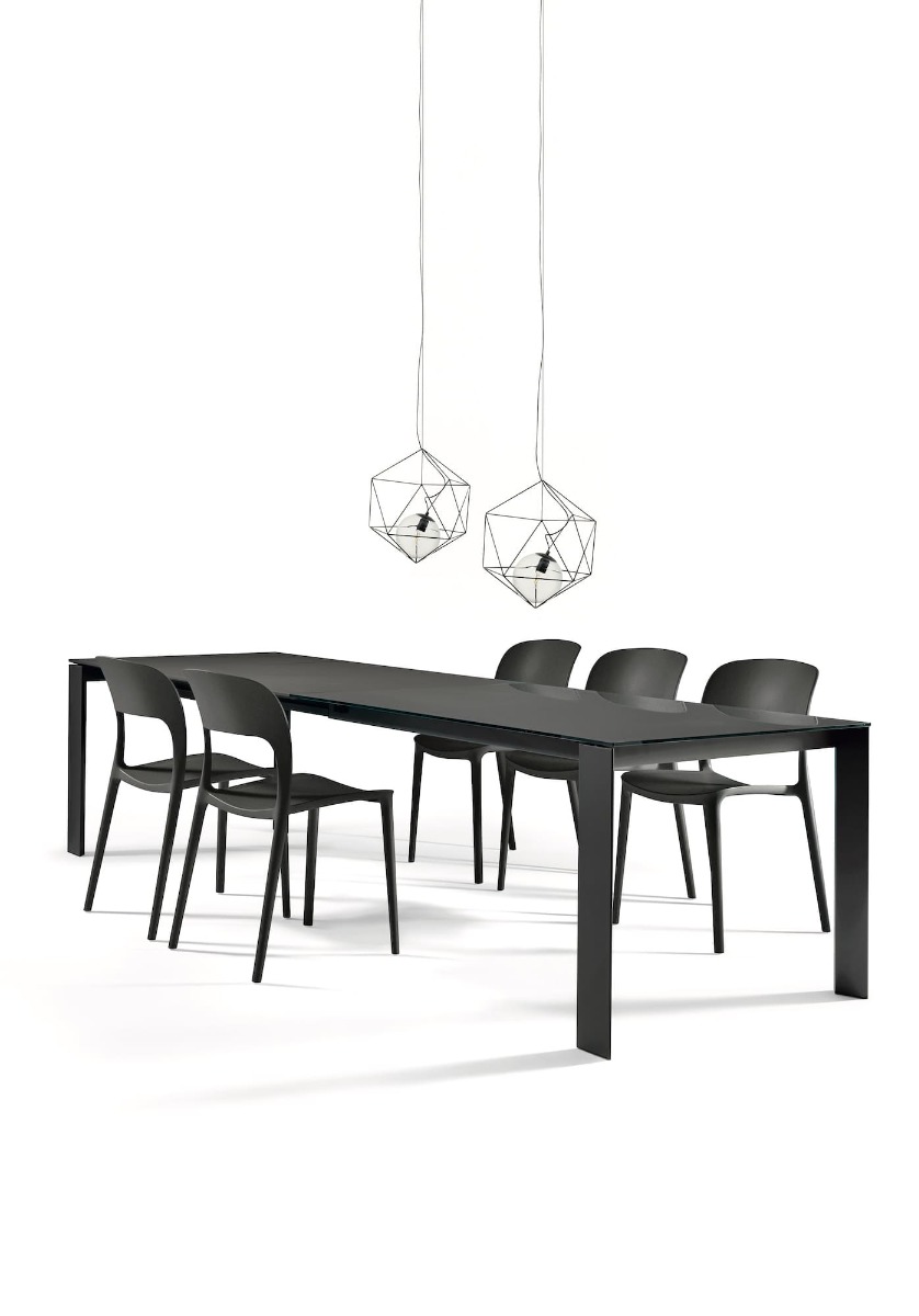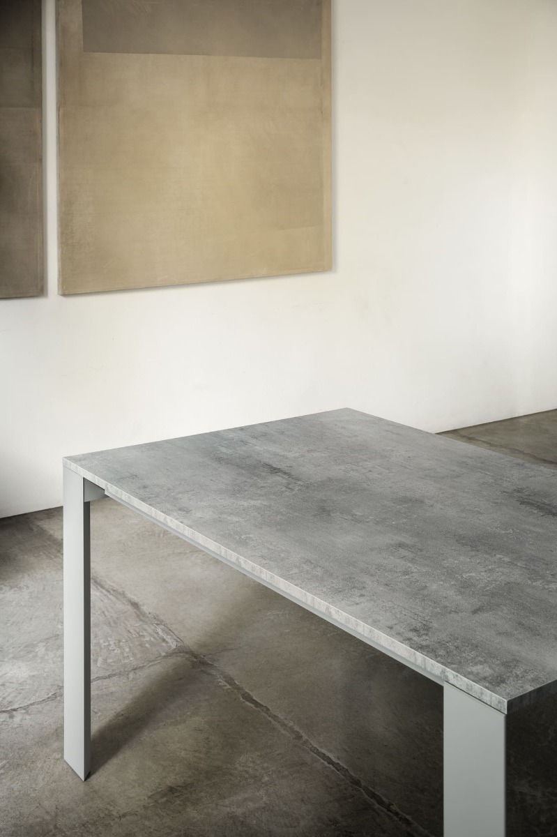 Top in melamine, scratch-resistant unicolor, veneered wood, glass, scratch-resistant glass, and superceramic.