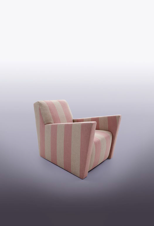 La poltrona Alternanza prodotta da Erba si caratterizza per le linee molto squadrate e pulite che ricordano le forme rigide degli anni Trenta.