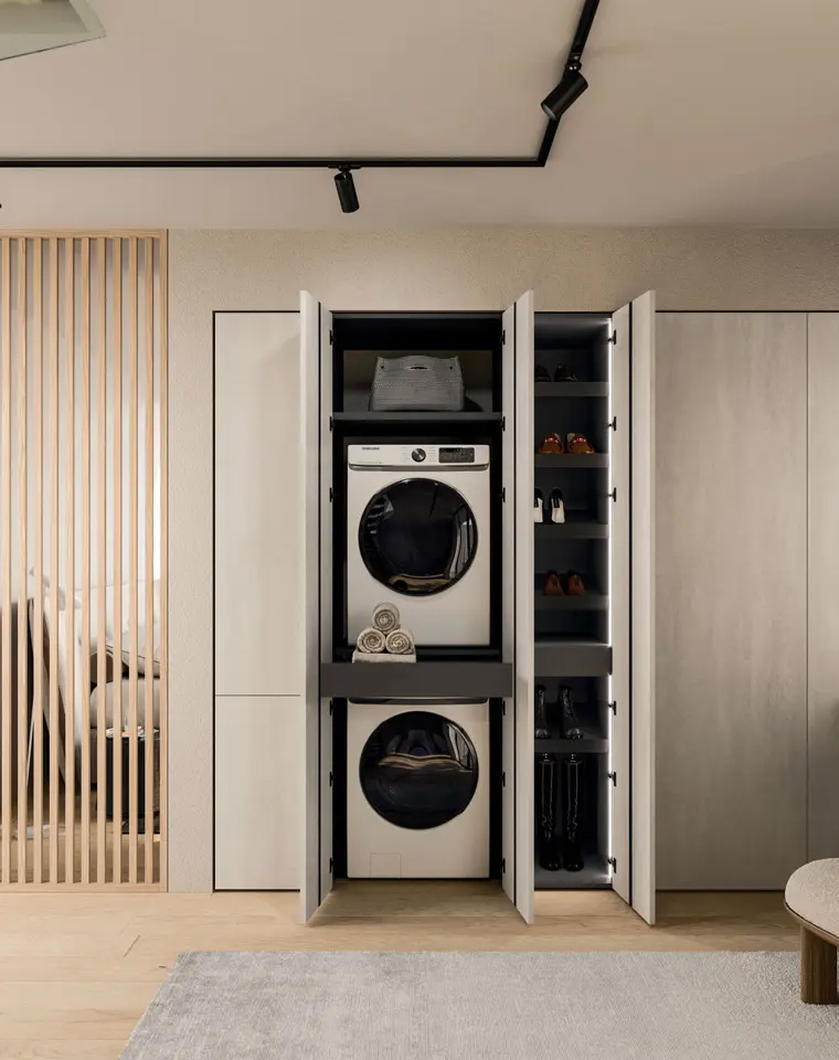 Contattaci per una soluzione personalizzata. I nostri interior designers sono a disposizione per fornirti idee e suggerimenti per arredare con stile il tuo ambiente lavanderia! Questo spazio non è solo un luogo di servizio, ma un'estensione dell'ordine domestico. Un progetto pensato per unire l'operatività quotidiana alla bellezza dei materiali e all'eccellenza del design Made in Italy.