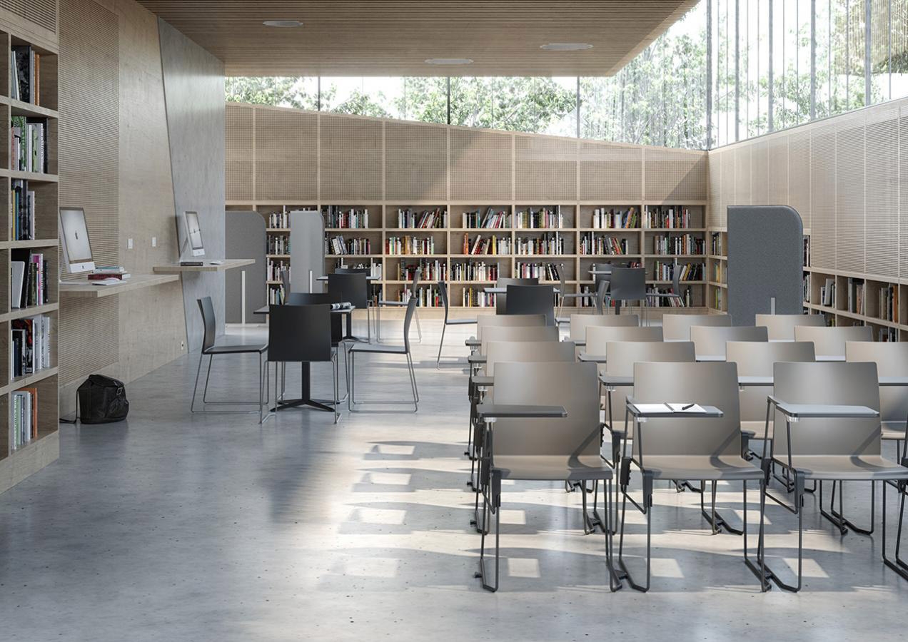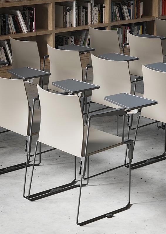 Le caratteristiche tecniche di Artesia si riflettono anche nella capacità di impilaggio, pari a 20 sedute a terra e 50 sedute su carrello (in questo caso con altezza massima pari a 2,10m).