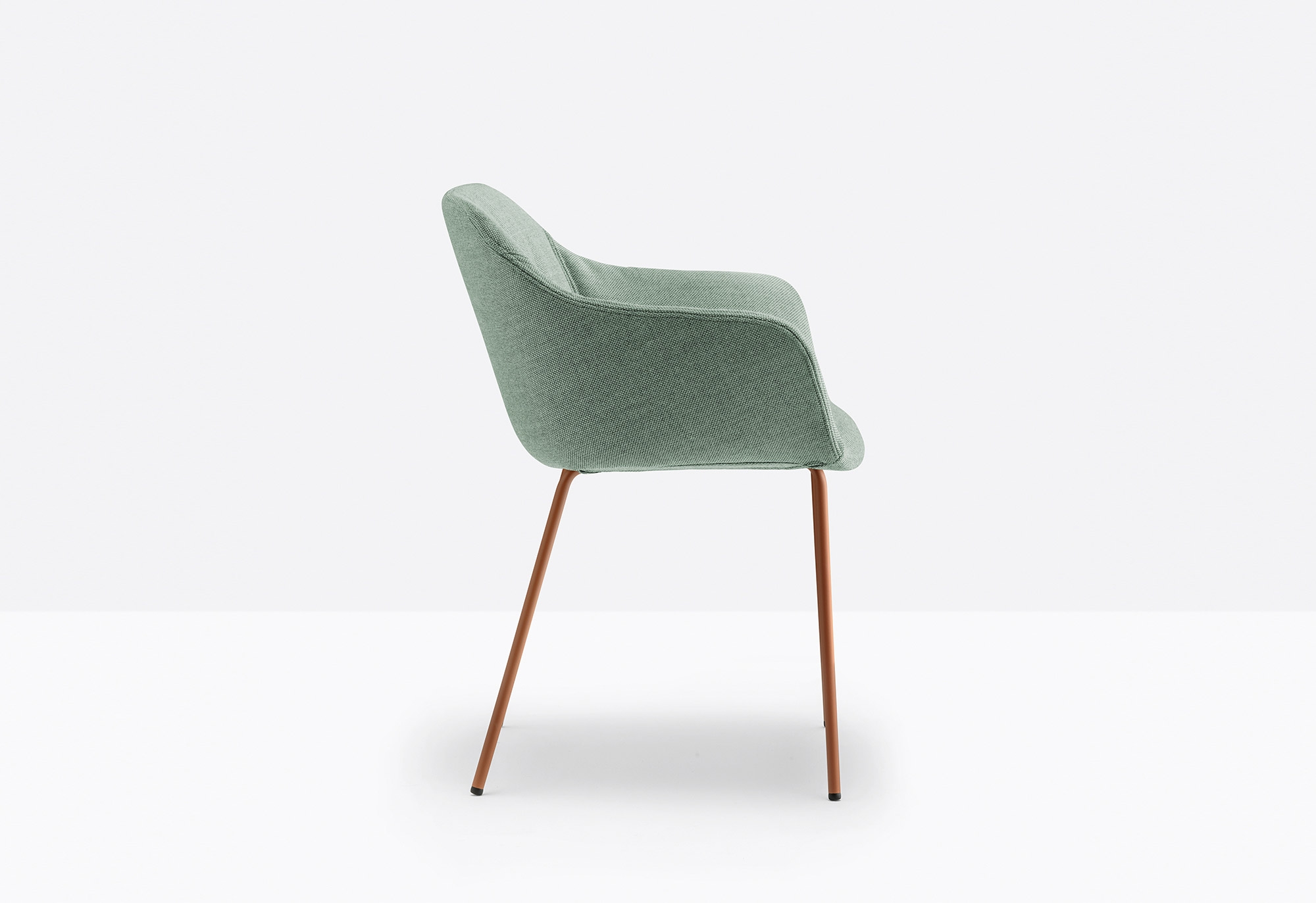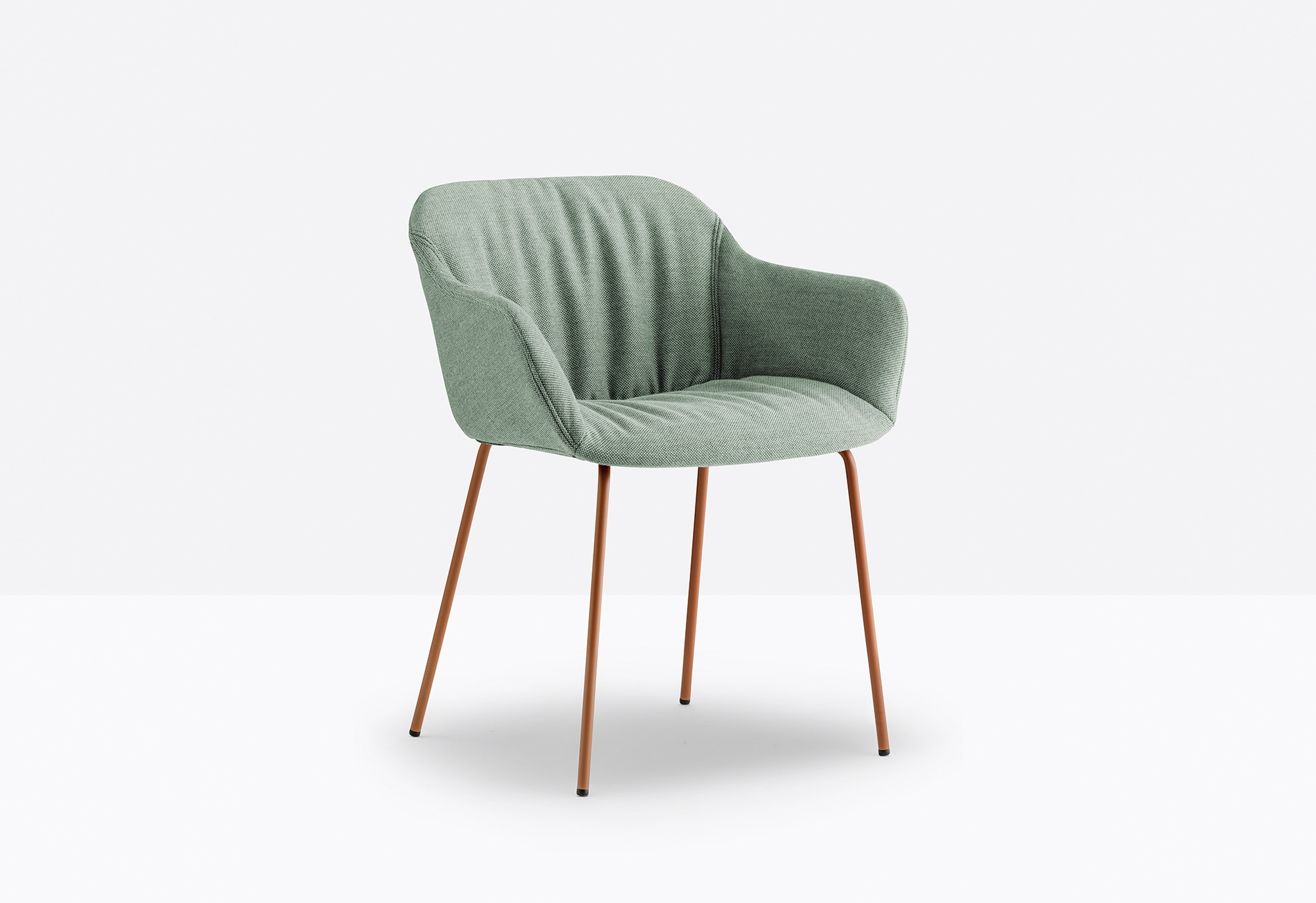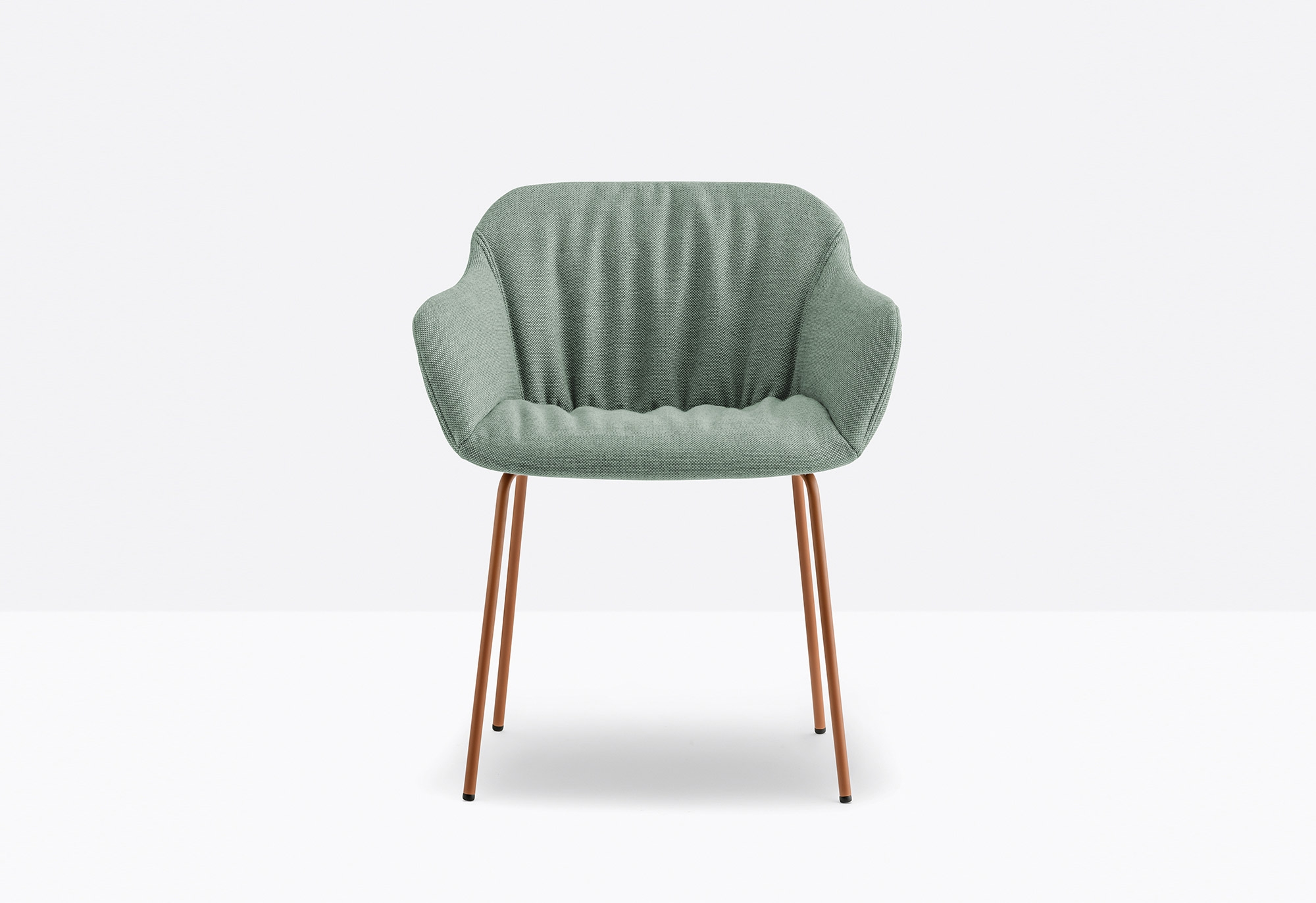L’obiettivo è quello di offrire un comfort generoso di seduta, grazie anche al rivestimento imbottito, quasi a ricordare un abito femminile.
