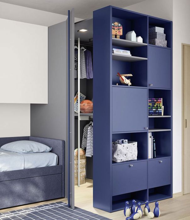 La cabina armadio Cabì è pensata per gli angoli della stanza. Ha tre profondità, tre altezze e tre tipologie di anta tra cui scegliere: battente, scorrevole, a soffietto. E in più, si può scegliere tra due tipologie di interni, da attrezzare a piacimento.