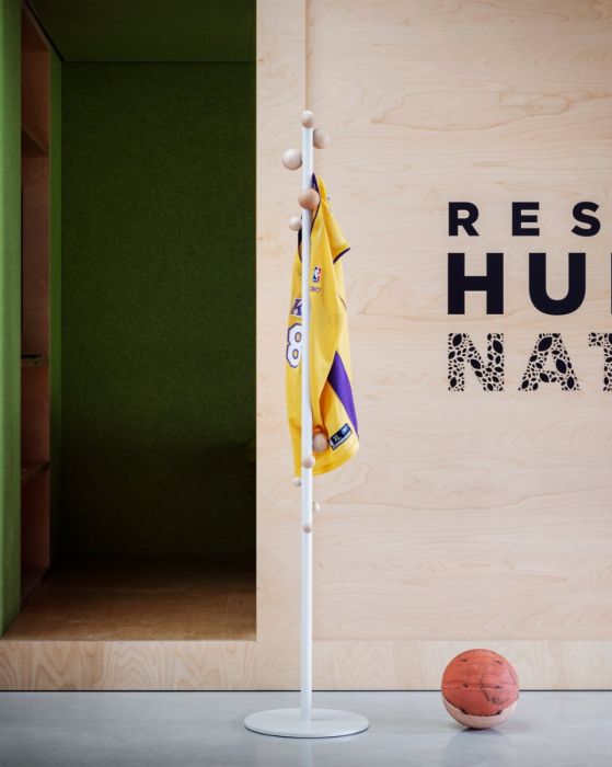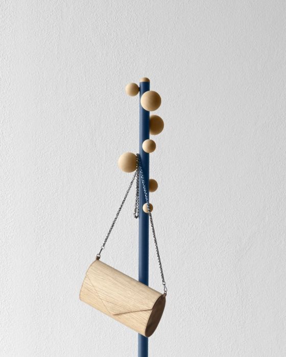 Piccole sfere in faggio sbucano da uno stelo colorato, contaminando con una personalità vivace l’appendiabiti tradizionale. È un complemento, che sostiene le tue sfide.