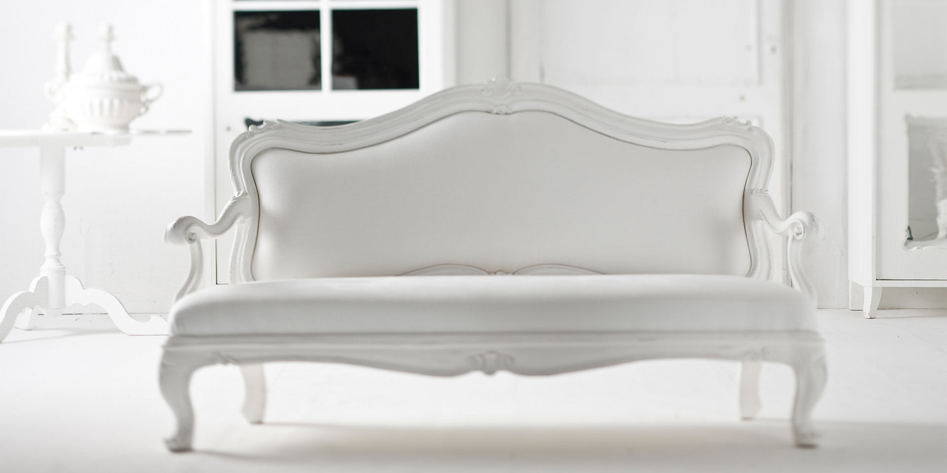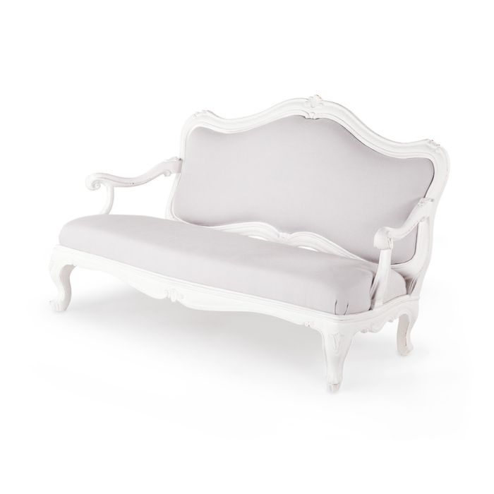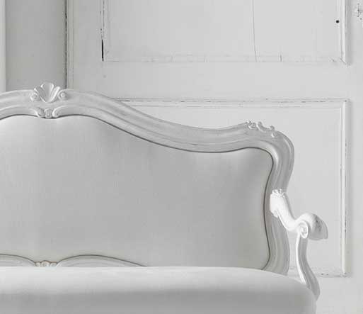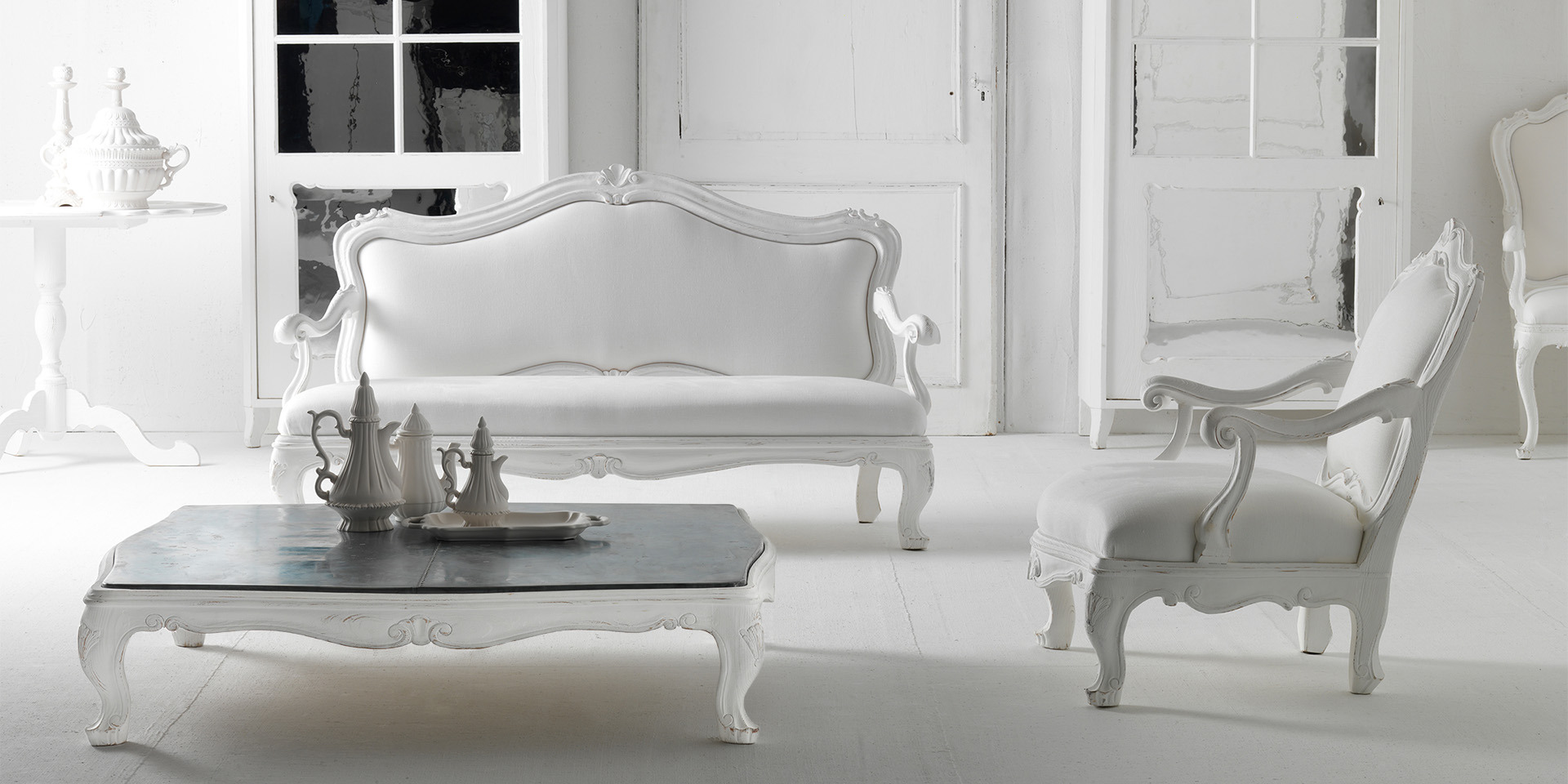 Divano con seduta e schienale imbottiti, struttura in legno massello intagliato e spazzolato a mano. Disponibile in diverse finiture.