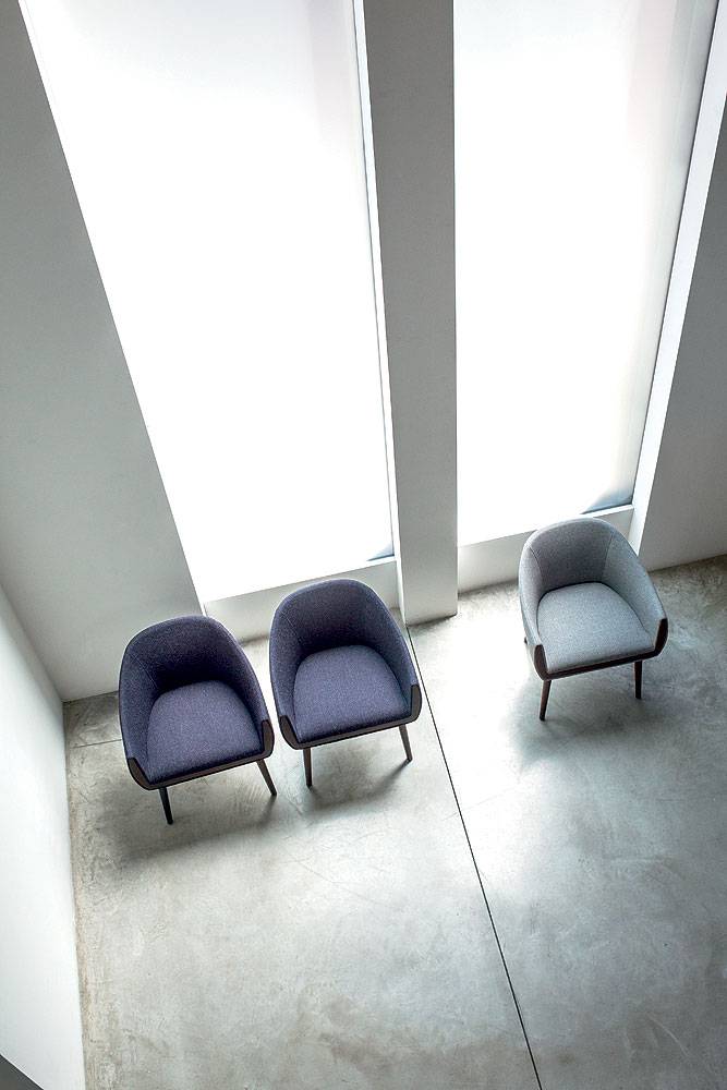 Ginevra abbina ad un design elegante una forma avvolgente ed ampia che invita al relax. Dotata di scocca in schiumato a freddo, rivestita scegliendo tra una vasta gamma di pelli e tessuti, viene supportata da una base con gambe in legno o, a scelta, con colonna centrale. L’insieme viene impreziosito da un inserto in essenza o laccato. Ginevra trova una sua ambientazione sia in un contesto domestico che negli spazi collettivi.