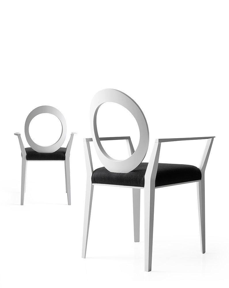 Esclusiva ed elegante seduta ricca di dettagli e finiture scelti per durare nel tempo. Sedia e poltroncina da pranzo dal particolare schienale avvolgente, realizzato con doghe di massello curvato, che viene saldamente fissato sulla seduta con piastra in metallo all’interno del sedile. La sapiente lavorazione del legno, disponibile in essenza o nei colori laccati, valorizza al massimo la raffinatezza di questa proposta.