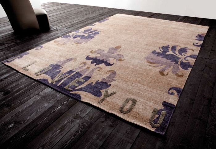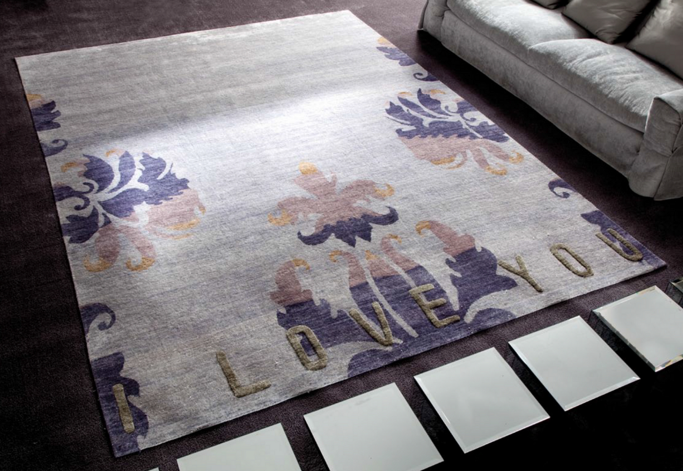 I love you - tappeto annodato a mano in seta di Erba Italia
