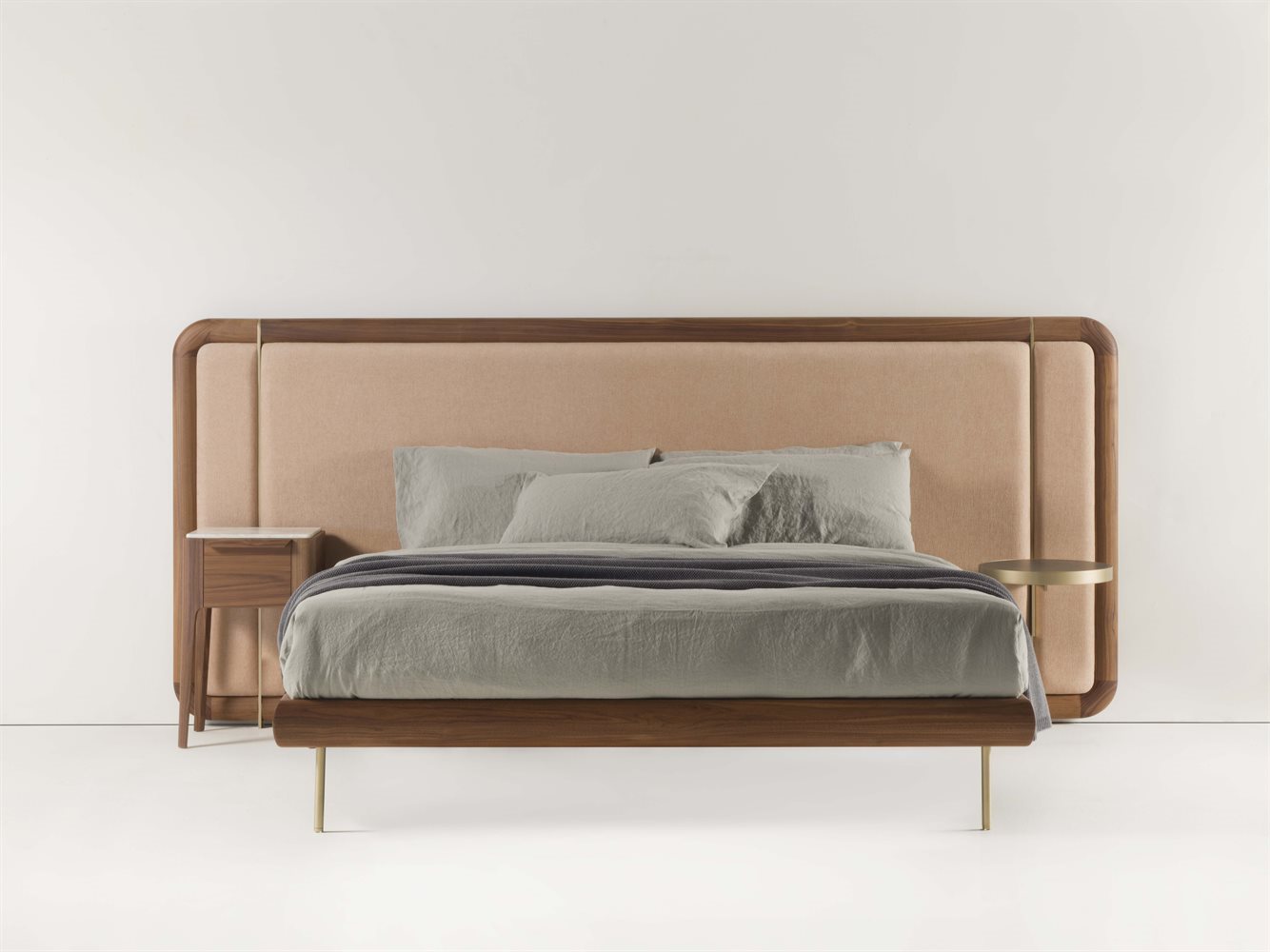 Inserti di giroletto e testata e profilo comodini in ottone spazzolato.