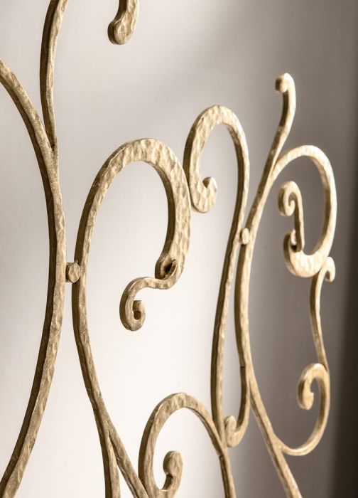 Letto matrimoniale in stile liberty Klimt in ferro battuto con giroletto imbottito.