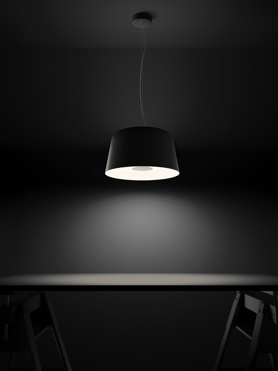 Delfi è una collezione dal design essenziale, caratterizzata da un paralume in metallo con finitura raggrinzante. La sorgente LED, posizionata all'interno della calotta, emette una luce indiretta che viene riflessa dal disco interno, garantendo un elevato comfort visivo e una diffusione omogenea. Disponibile in una ricercata varietà di colori, Delfi si adatta con versatilità a diverse esigenze d'arredo, offrendo soluzioni coordinate per ogni tipo di ambiente.