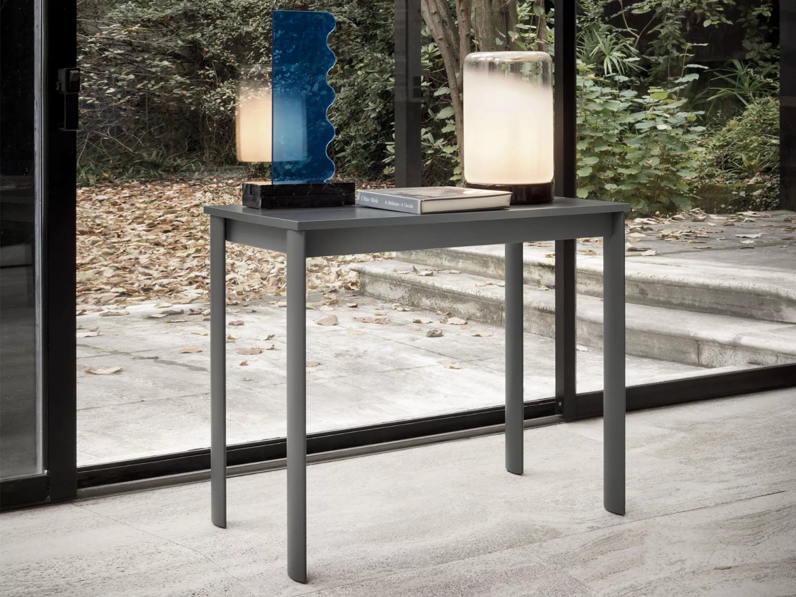 Lampada da tavolo caratterizzata da un design semplice e moderno, con vetro sfumato bianco che diffonde una luce soffusa e avvolgente. La base in acciaio laccato aggiunge solidità e un tocco contemporaneo, rendendo questa lampada perfetta per ogni ambiente domestico o professionale che richieda un elemento di illuminazione elegante e funzionale.