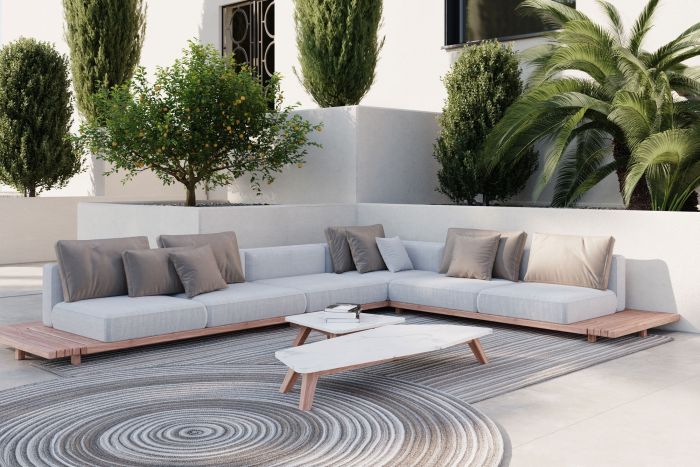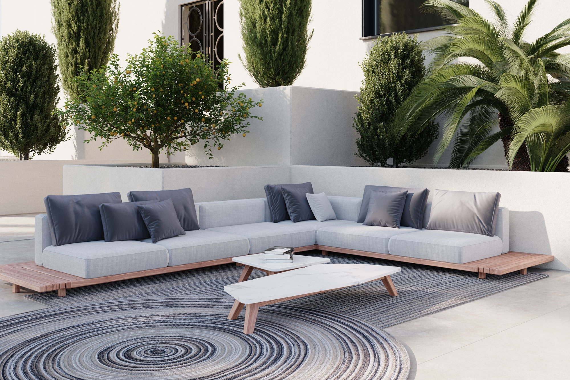 Vengono quindi cuciti insieme, scambiando le stringhe chiare e scure per creare forme accattivanti che trasporteranno qualsiasi spazio esterno in un mondo a parte.
