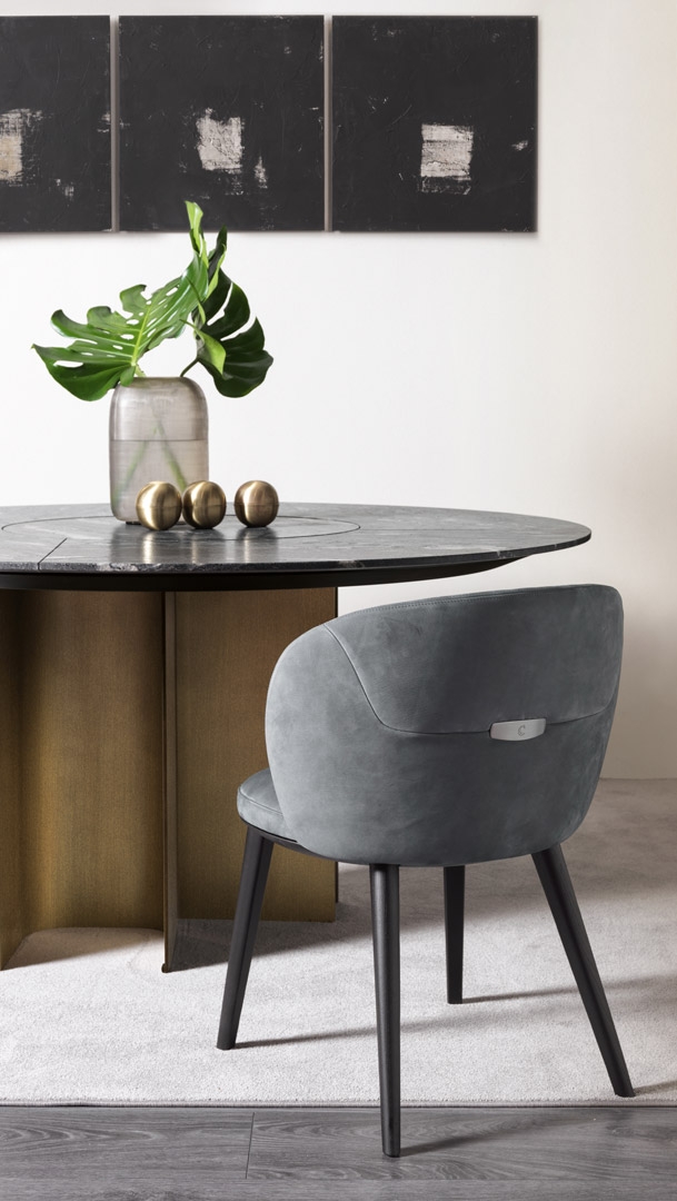 Le linee avvolgenti della sedia imbottita Shiba e la seduta ergonomica assicurano il massimo comfort.