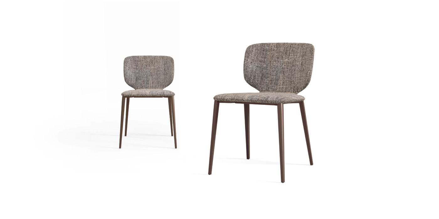 Sedia con gambe in massello di legno, schienale e seduta in poliuretano espanso, rivestimento in fibra.