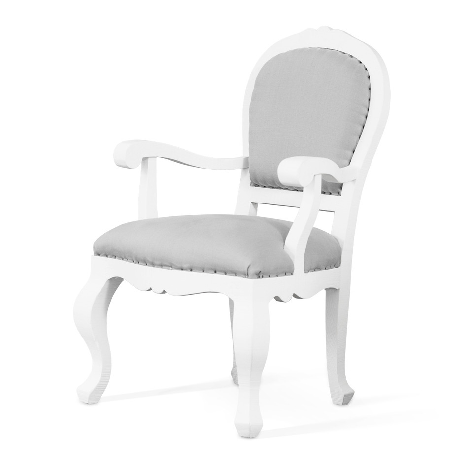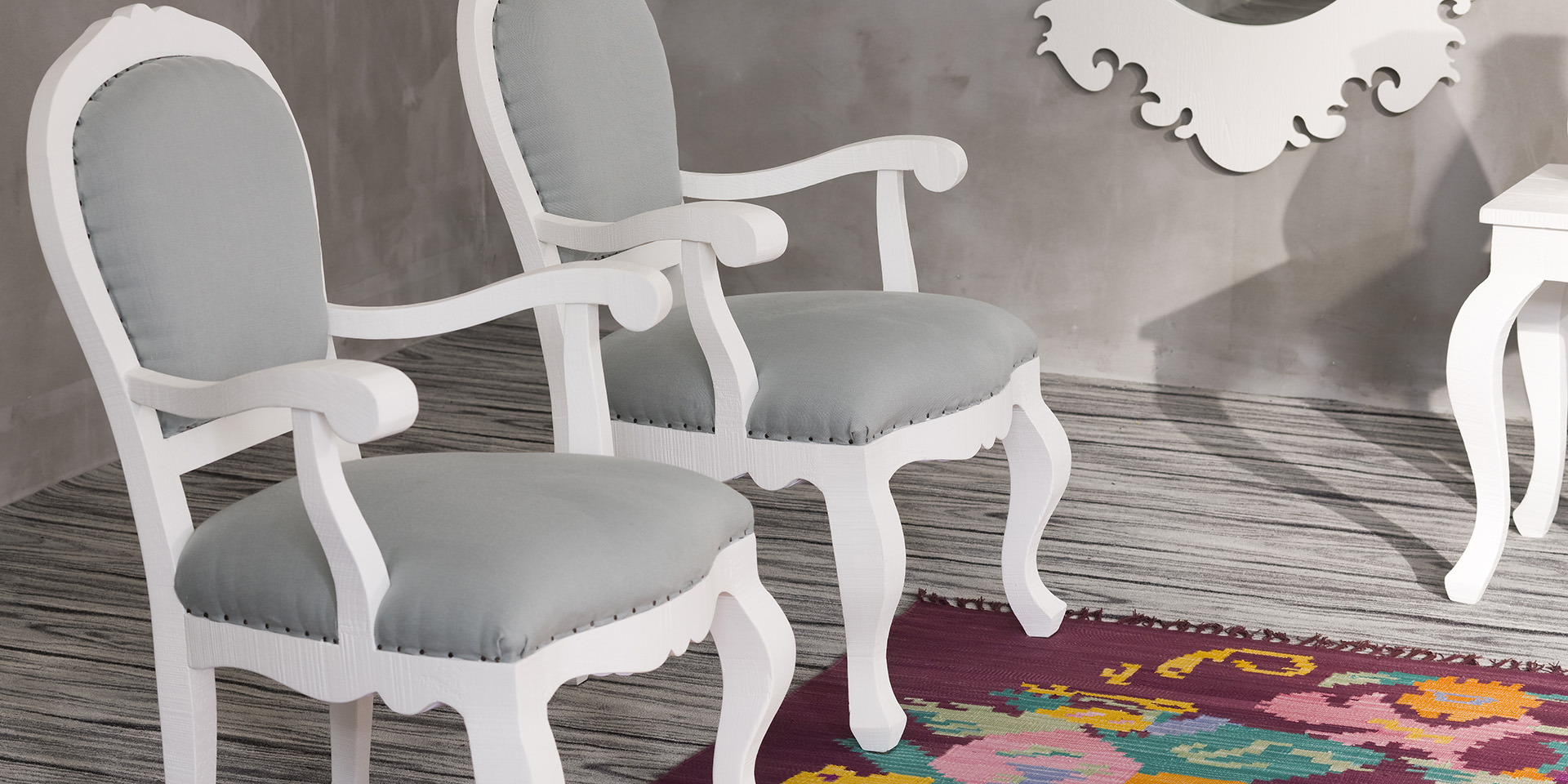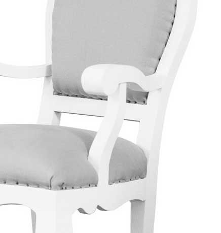 Sedia con braccioli, rovere massello sabbiato, seduta e schienale imbottiti. Disponibile in diverse finiture.