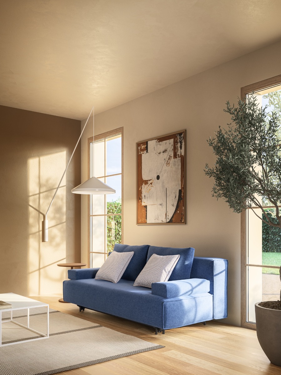 Un divano trasformabile in letto in pochi gesti intuitivi e veloci. Una presenza discreta, con il grande talento di adattarsi a qualsiasi spazio.