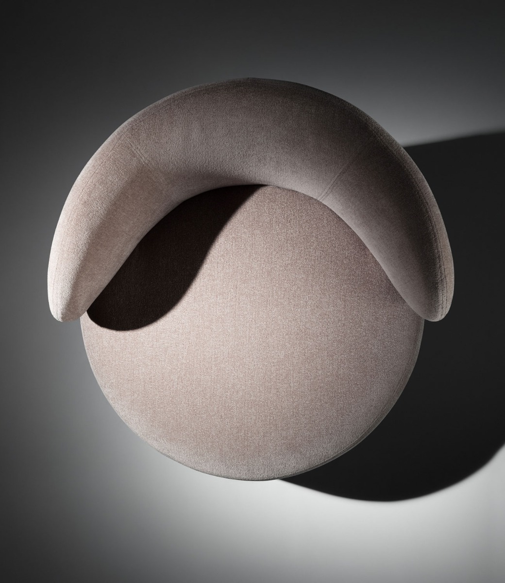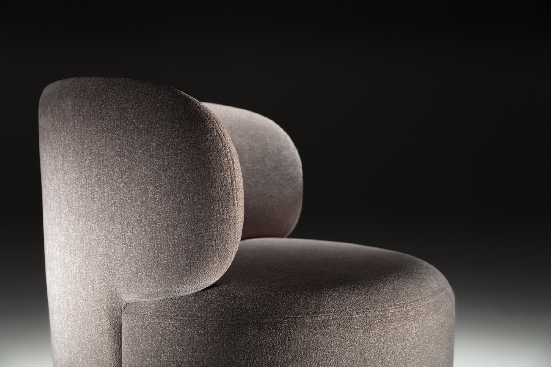 Milos nasce dal cerchio: una forma primaria che diventa abbraccio, un design che racconta l’essenzialità attraverso la morbidezza. Piccola poltroncina pensata per abitare gli spazi intimi della casa, si propone come compagna ideale dei momenti di pausa.