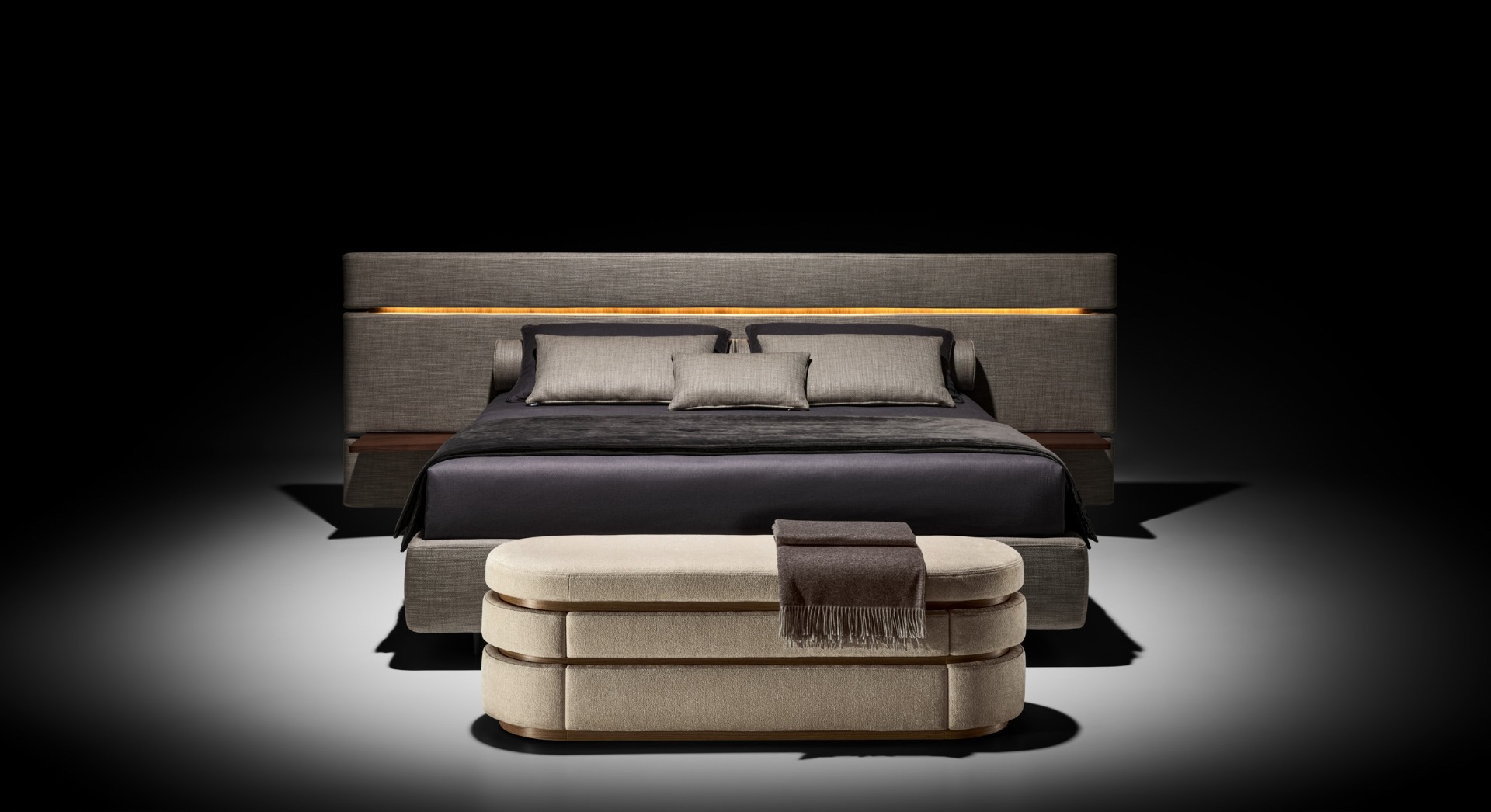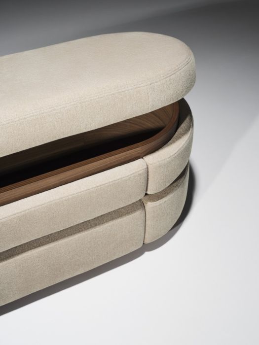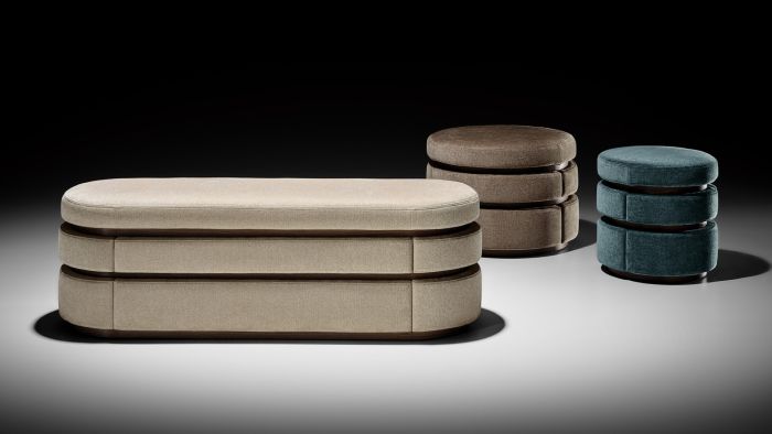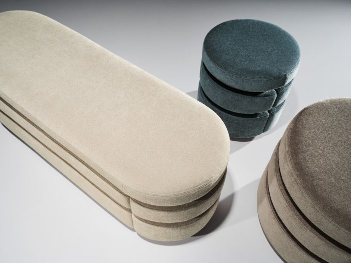 Infinito ha anche una famiglia di complementi. La panca di grandi dimensioni, i pouf di due diverse misure.