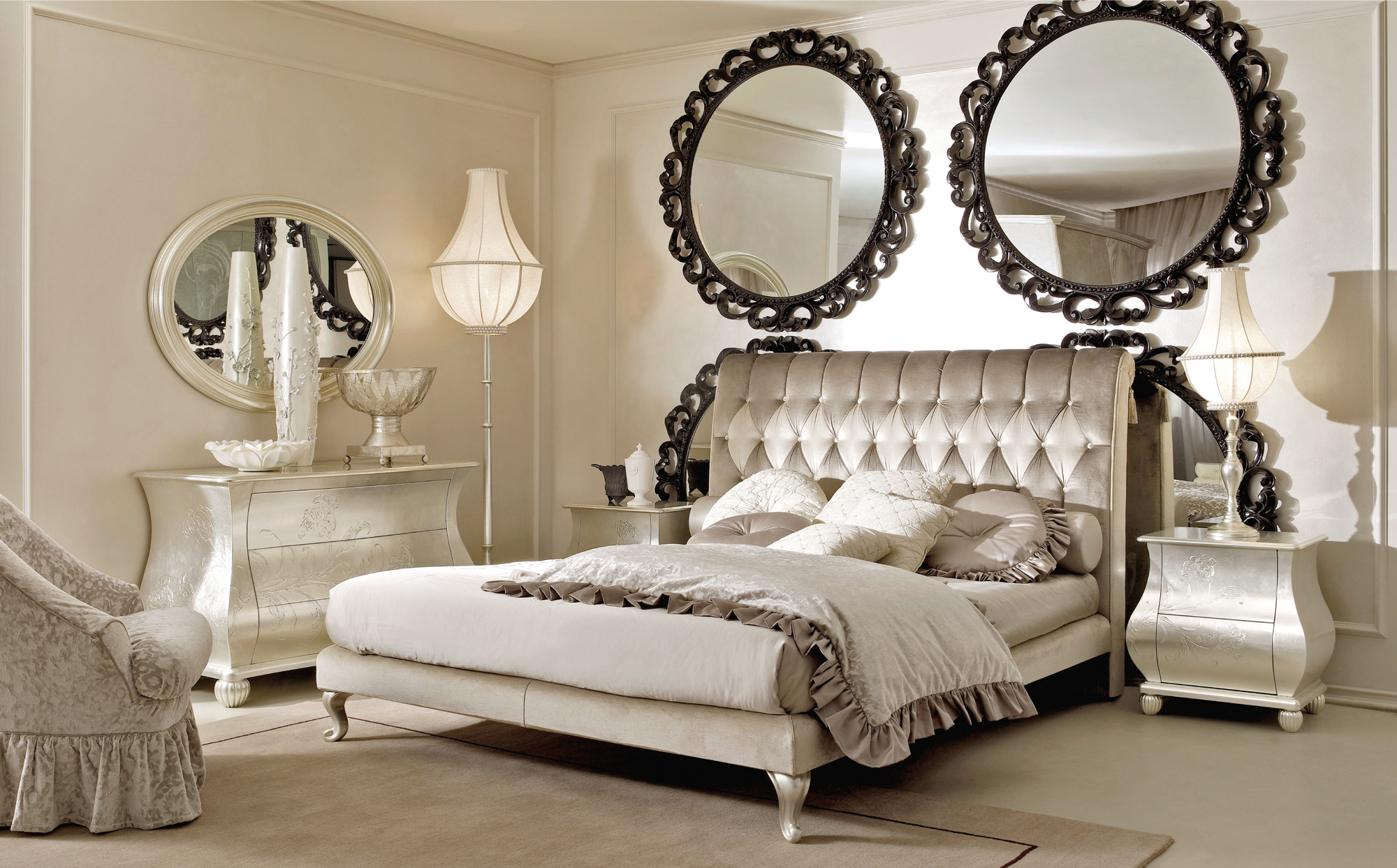 Letto con struttura in legno caratterizzato dalla testiera imbottina con decorazione capitonnè.