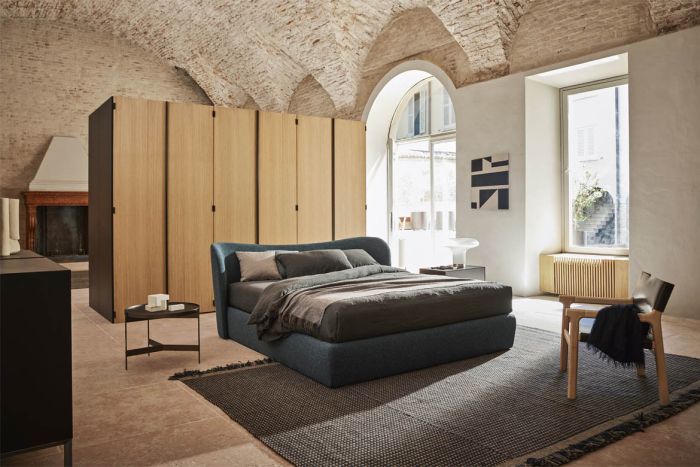 La rassicurazione nasce dal ricordo delle forme classiche: solenni, autorevoli, ma al tempo stesso accoglienti. Il letto Embrace, nella sua raffinata semplicità, riscopre il calore di un abbraccio, di un porto sicuro verso cui approdare.