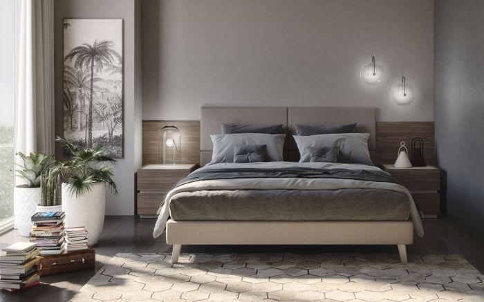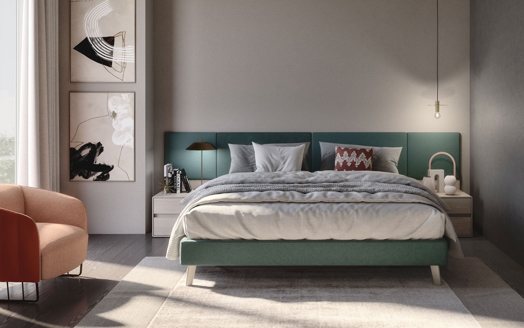 • Letti matrimoniali disponibili in versione imbottita o materica