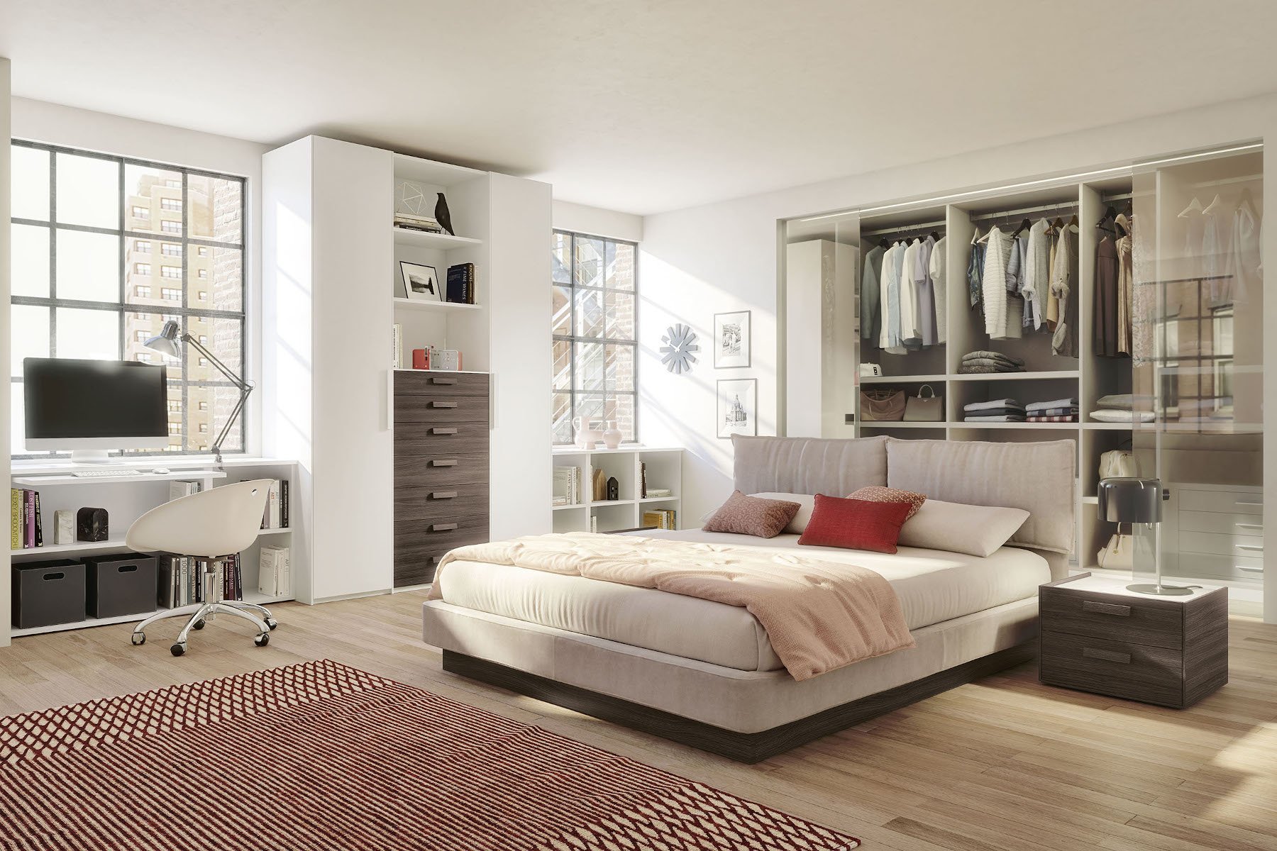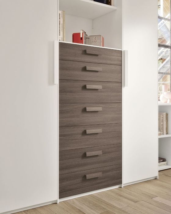 La collezione Prodigi offre un sistema d'arredo completo e coordinato per l'intera zona notte: dai letti dal design ricercato agli armadi estremamente capienti, fino ai gruppi notte composti da comodini, comò e settimanali. Ogni elemento è progettato per dialogare armoniosamente, permettendo di configurare una camera matrimoniale "total look" dove funzionalità e coerenza estetica si incontrano in ogni dettaglio.